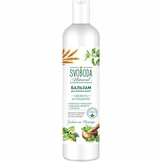 Бальзам-ополаскиватель для жирных волос SVOBODA экстракт мелиссы, крапивы, протеин пшеницы, 430 мл интересное: