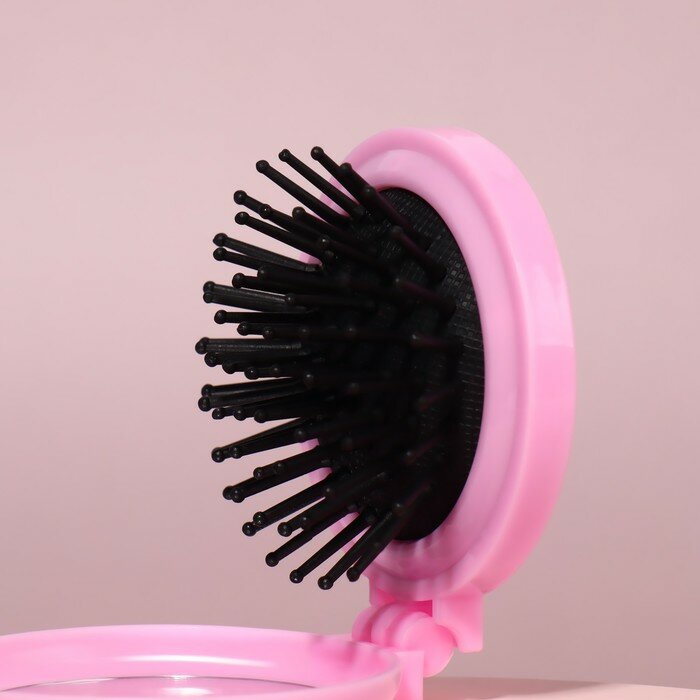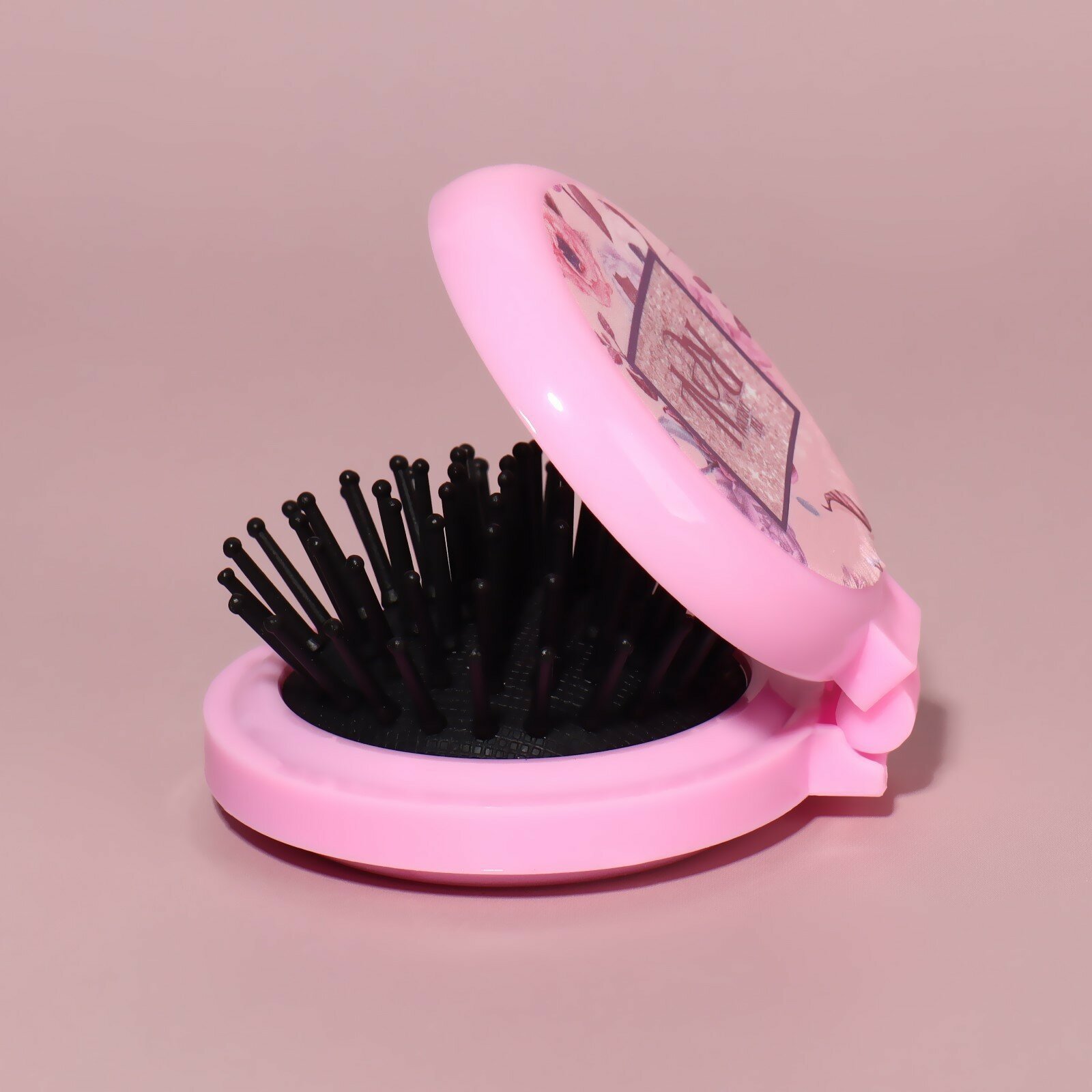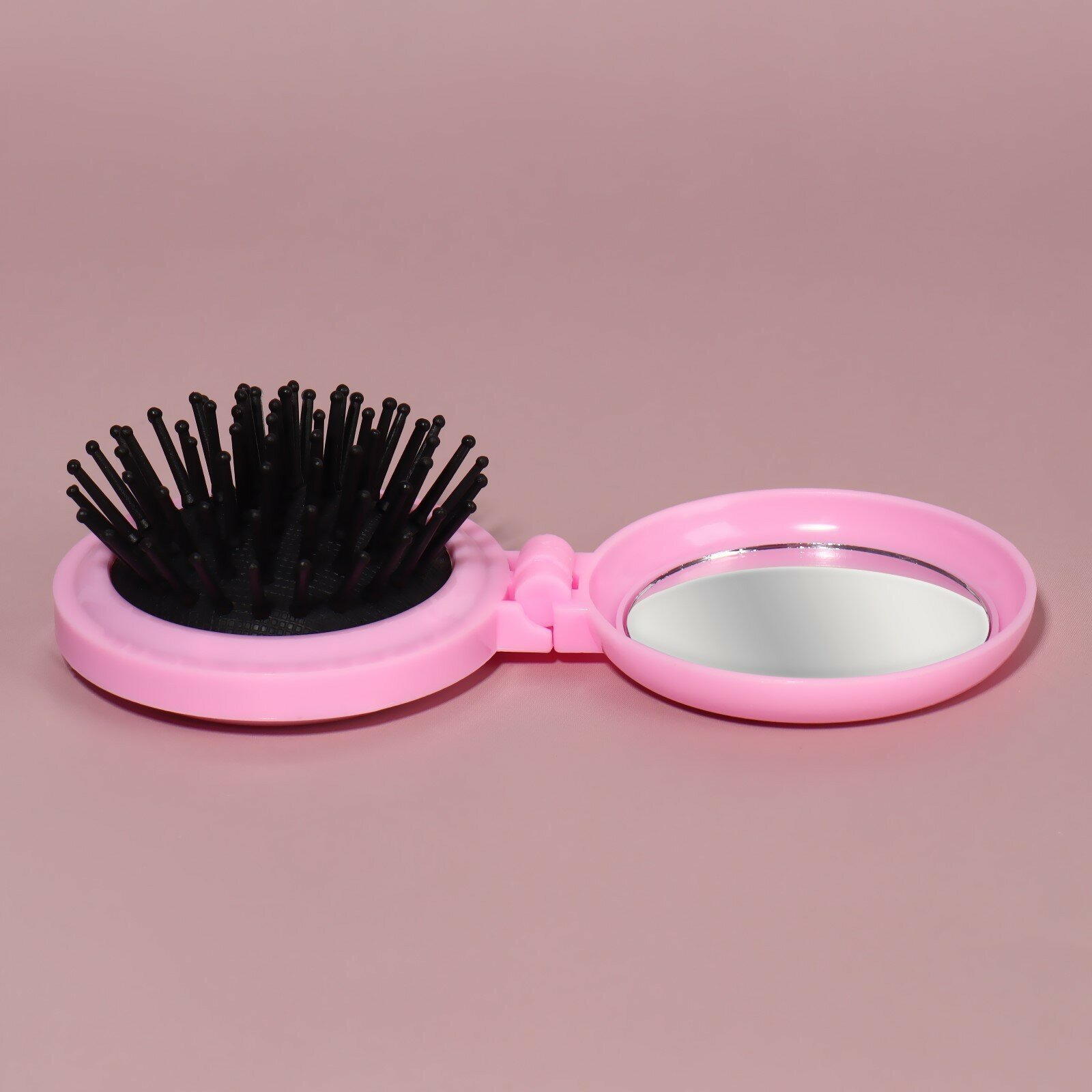 Расчёска массажная, складная, с зеркалом, d = 6,5 см, рисунок микс интересное: