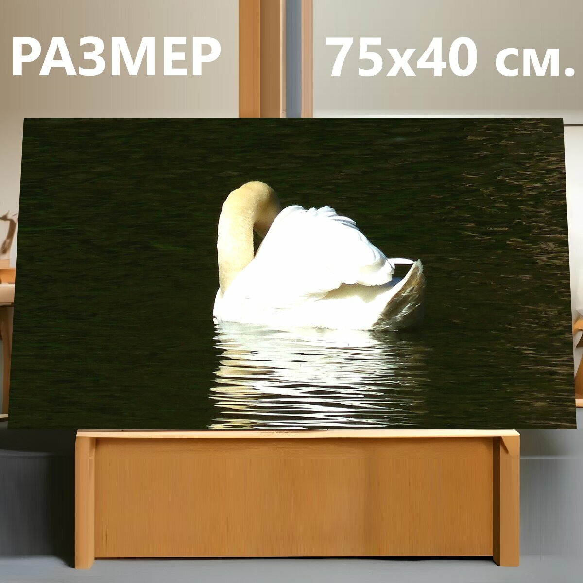 Картина на холсте "Водное пространство, озеро, лебедь" на подрамнике 75х40 см. для интерьера интересное: