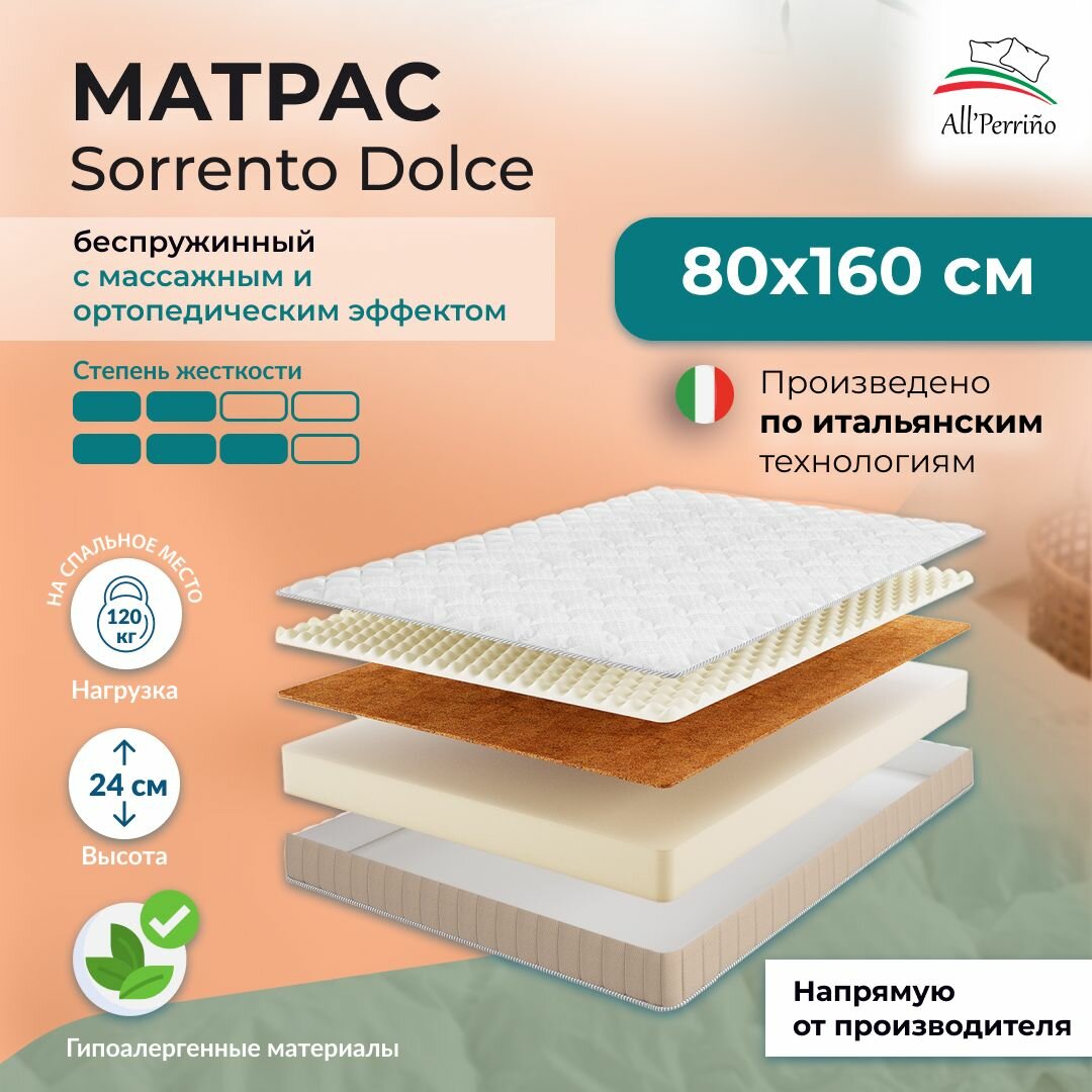 Матрас All'Perrino Sorrento Dolce беспружинный 18 80х160 интересное: