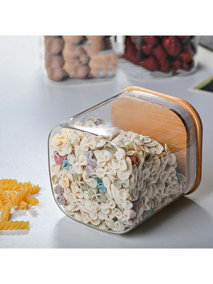 Купить Банка стеклянная с крышкой 650 мл, с бамбуковой крышкой