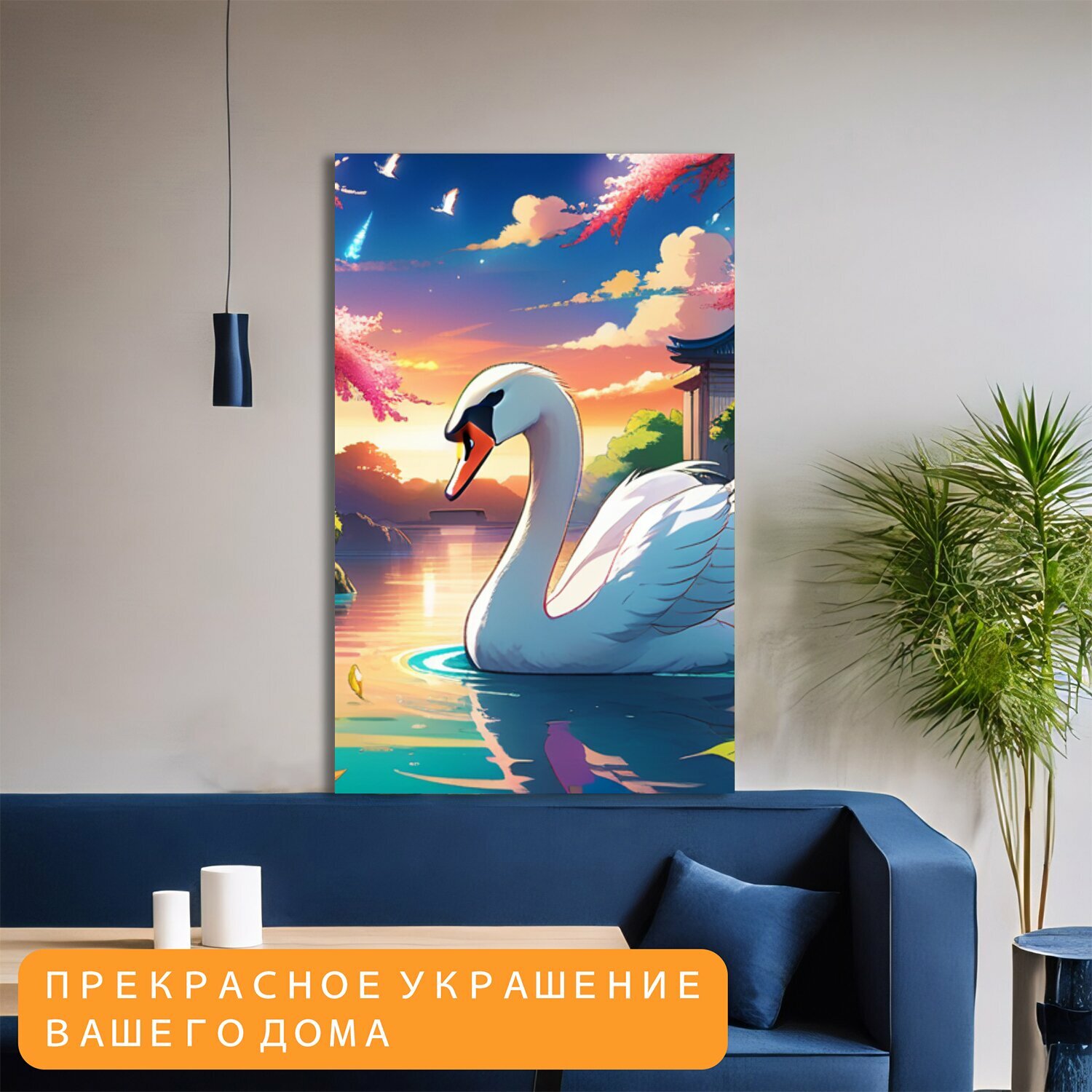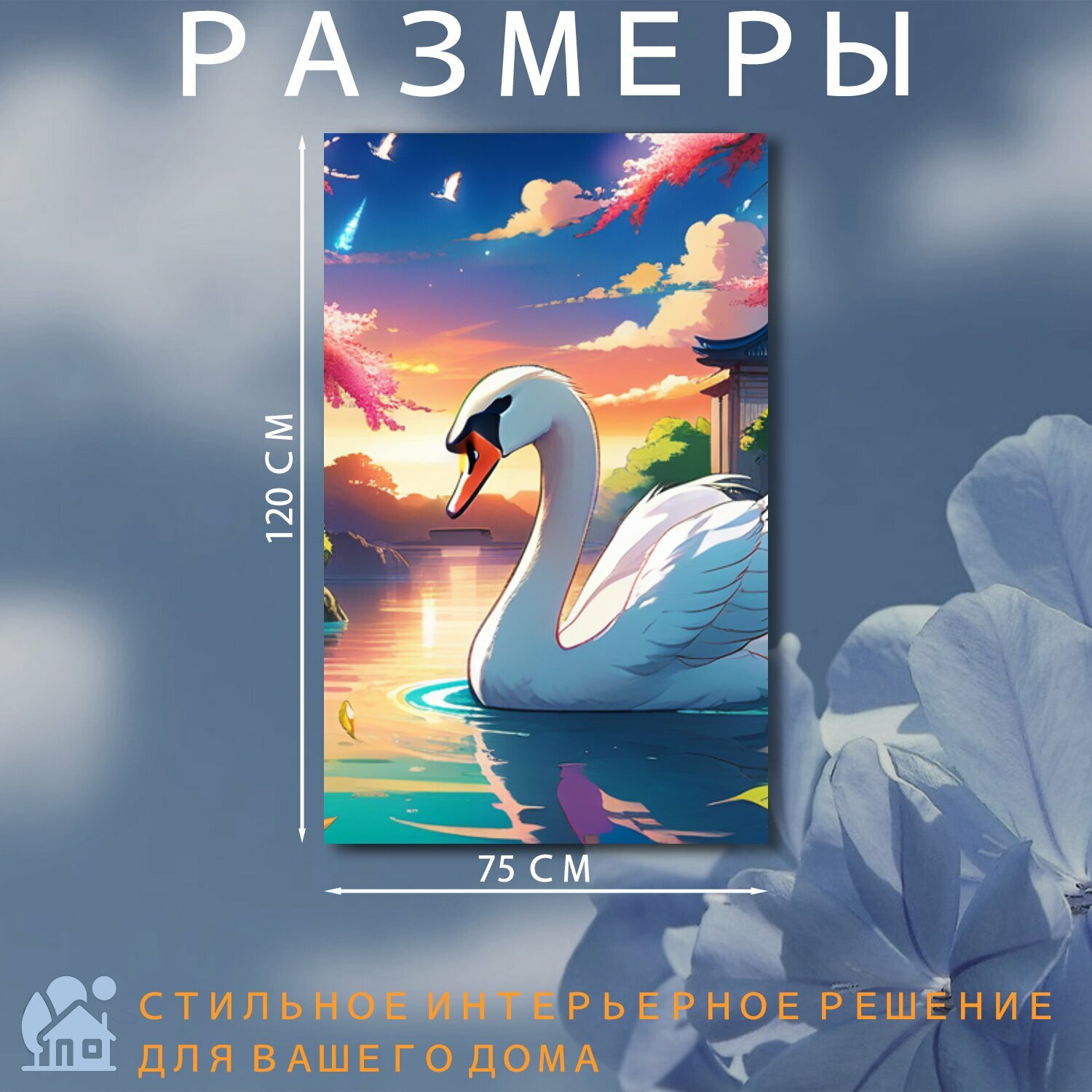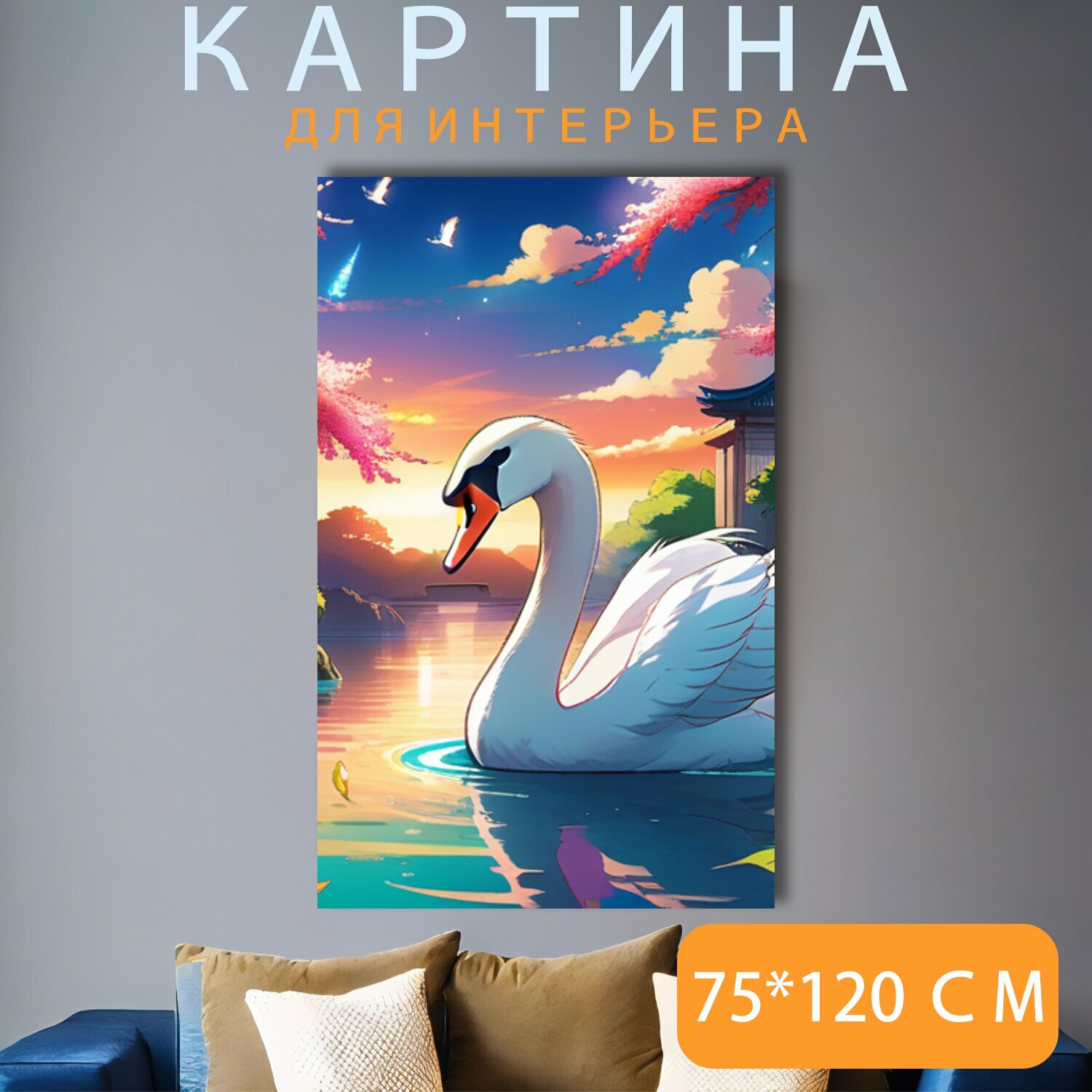 Картина на холсте В детскую комнату "Животные, звери, лебедь " на подрамнике 75х120 см. для интерьера интересное: