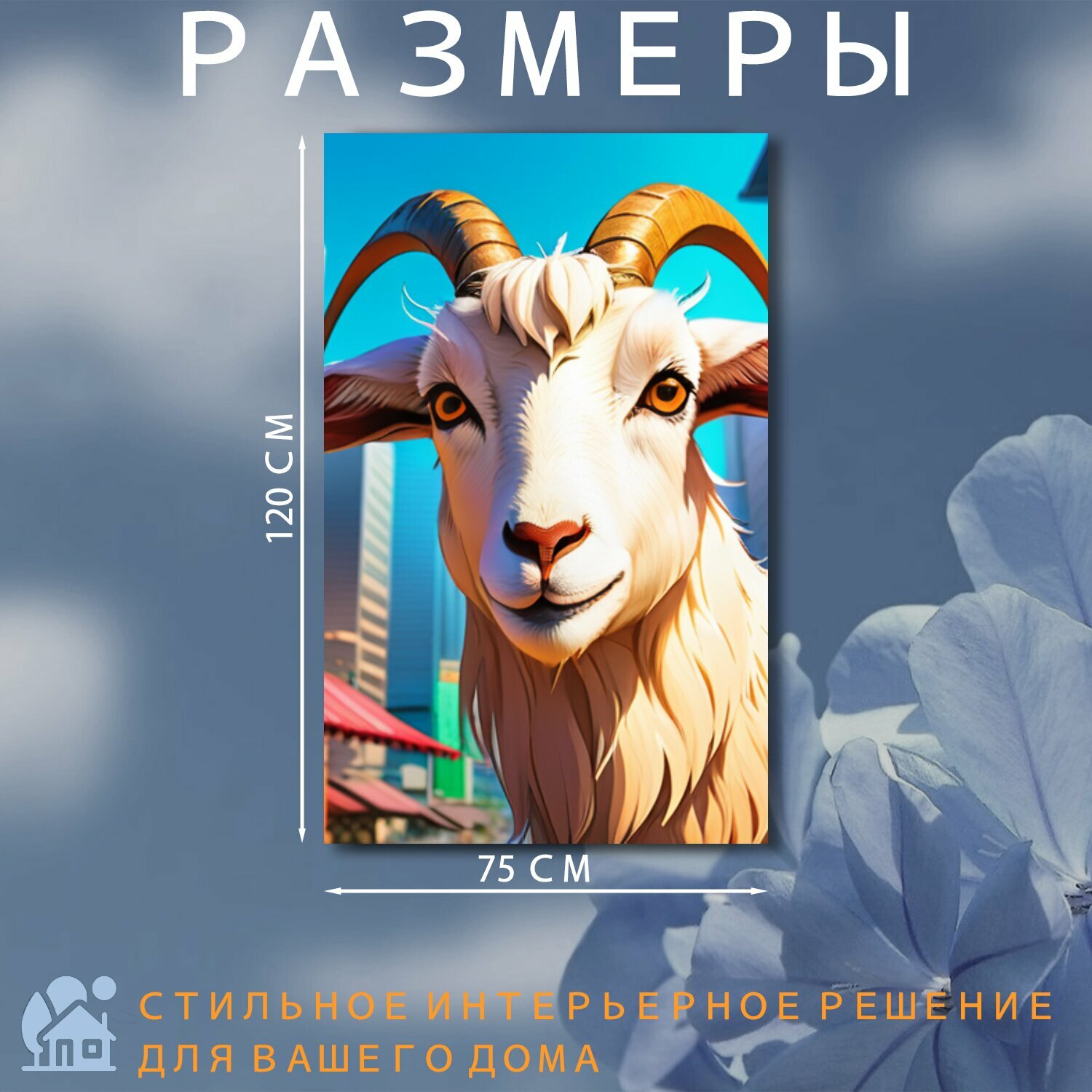 Картина на холсте В детскую комнату "Животные, звери, коза в городе" на подрамнике 75х120 см. для интерьера интересное: