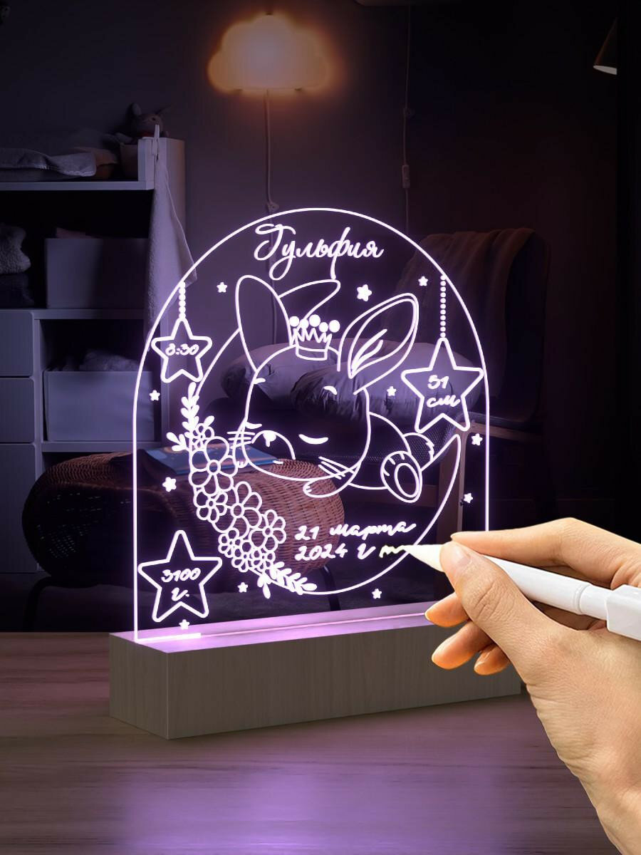 Купить Ночник с маркером именной гульфия / Метрика для ребенка