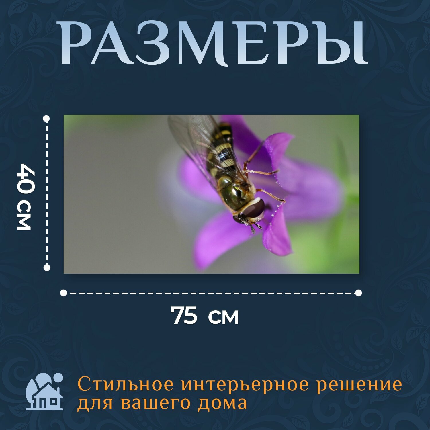Купить Картина на холсте "Летать в воздухе, насекомое, колокольчик" на подрамнике 75х40 см. для интерьера