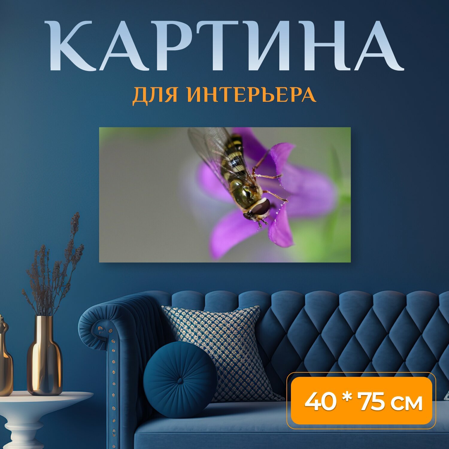 Картина на холсте "Летать в воздухе, насекомое, колокольчик" на подрамнике 75х40 см. для интерьера интересное: