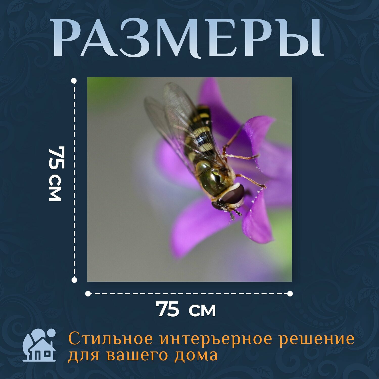 Купить Картина на холсте "Летать в воздухе, насекомое, колокольчик" на подрамнике 75х75 см. для интерьера