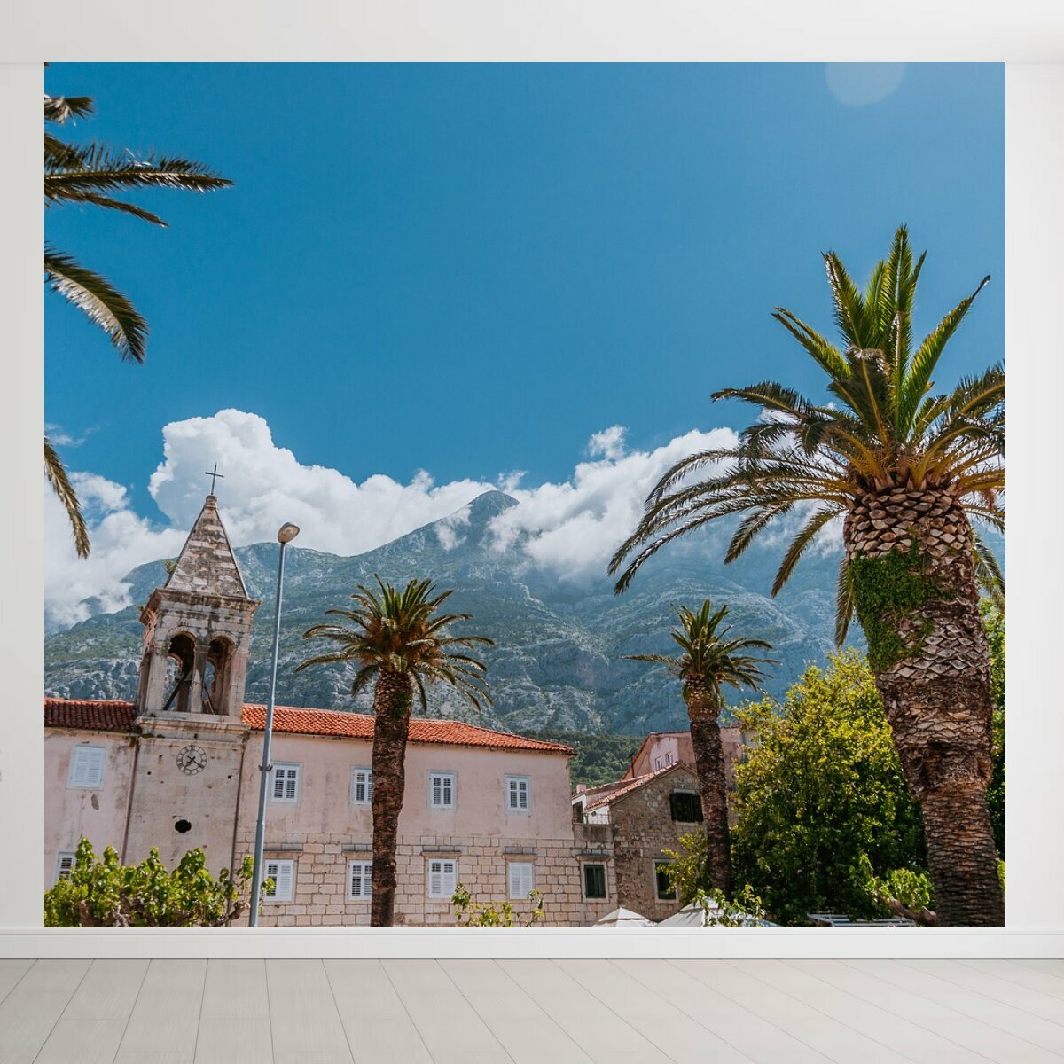 Фотообои ударопрочные моющиеся "Ладонь, город, архитектуры" 300x270 см. флизелиновые на стену