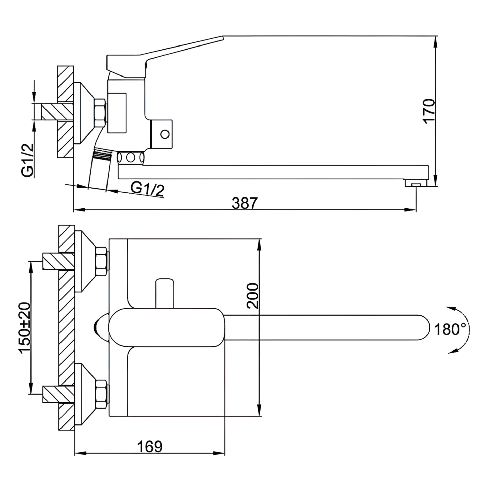 Купить Смеситель для ванны c душем Фрап F2261 однорычажный хром латунь