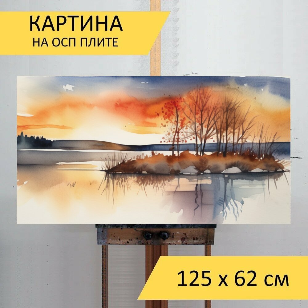 Картина на ОСП "Осенний вечер, в стиле акварель" 125x62 см. для интерьера на стену интересное: