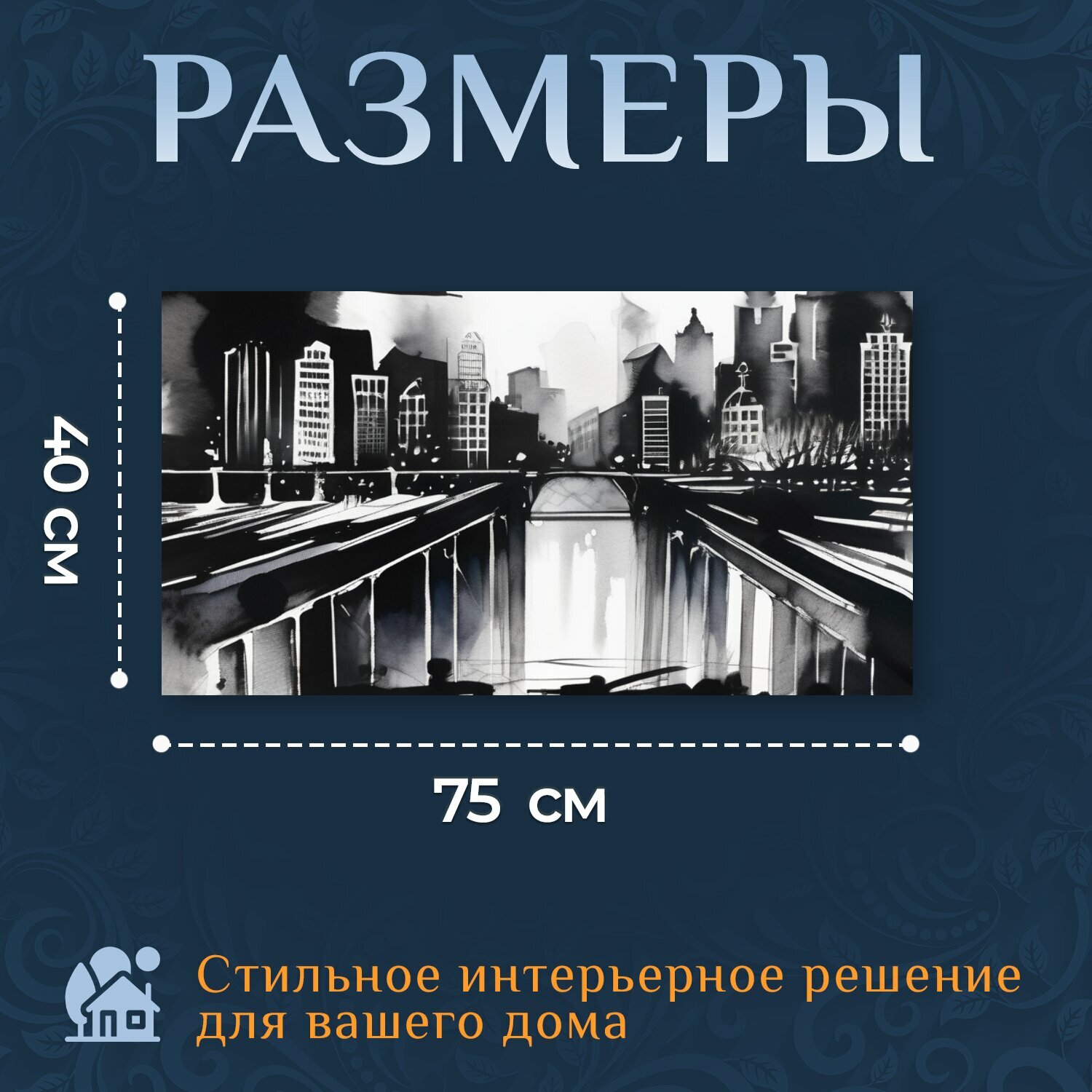 Картина на холсте "Черный город, в стиле акварель" на подрамнике 75х40 см. для интерьера интересное: