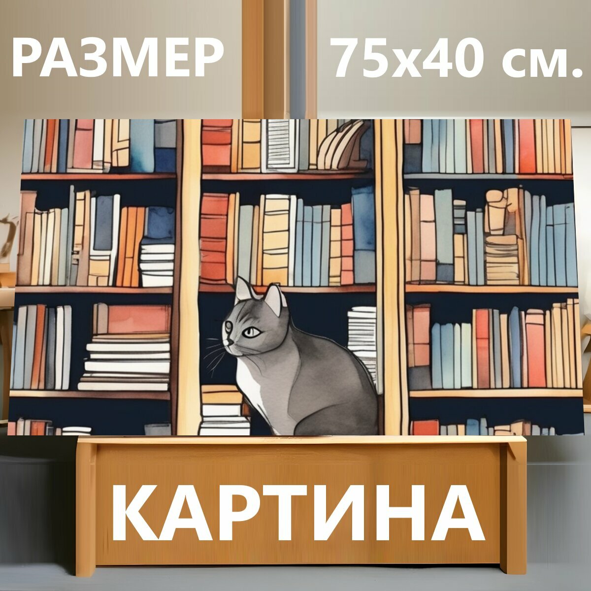 Купить Картина на холсте "Кот в книгах, в стиле акварель" на подрамнике 75х40 см. для интерьера