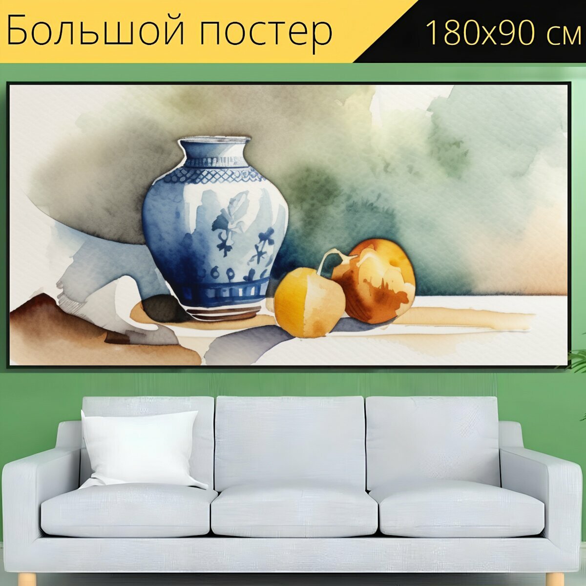 Большой постер "Натюрморт с вазой, в стиле акварель" 180 x 90 см. для интерьера на стену интересное: