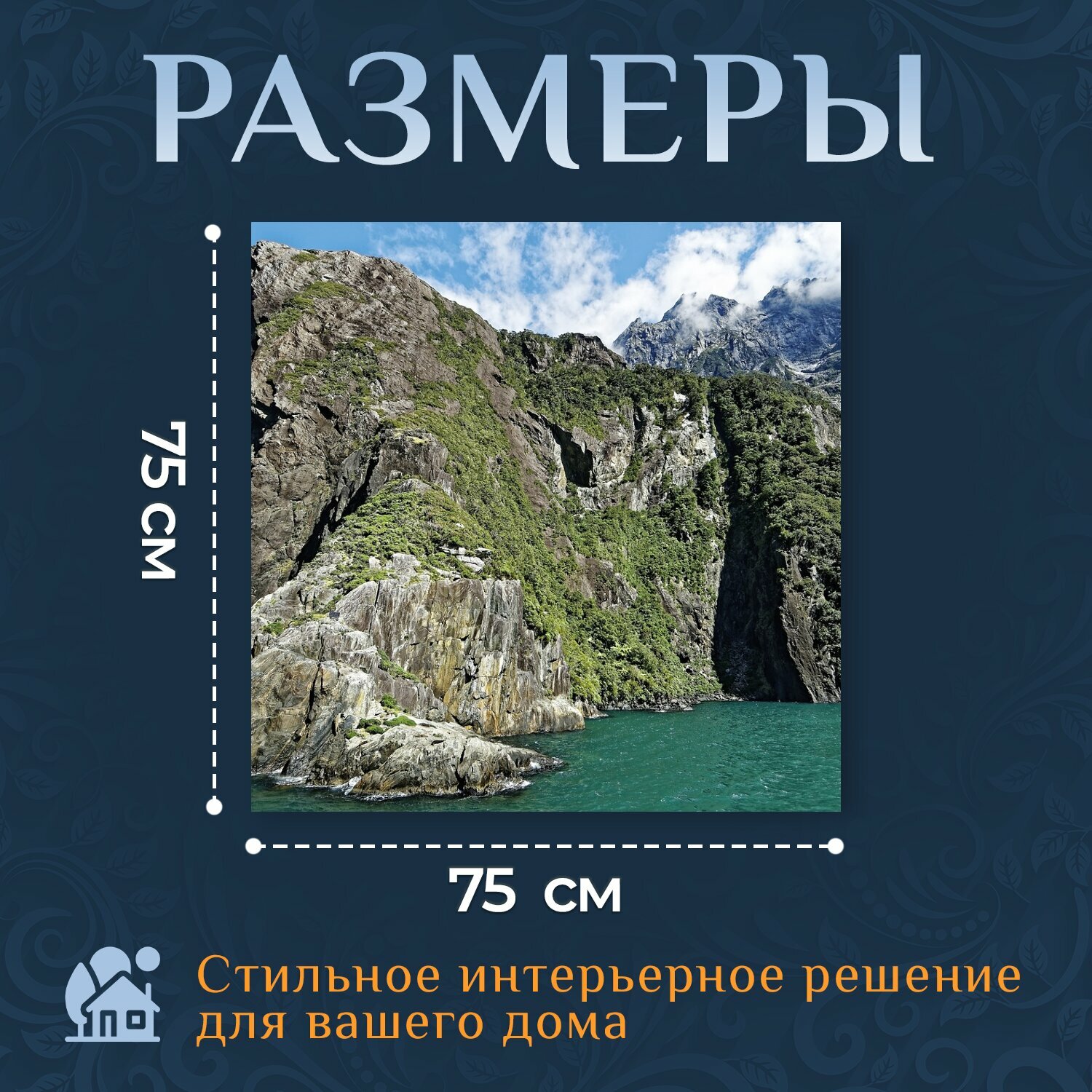 Картина на холсте "Новая зеландия, милфорд саунд, фьорд" на подрамнике 75х75 см. для интерьера интересное: