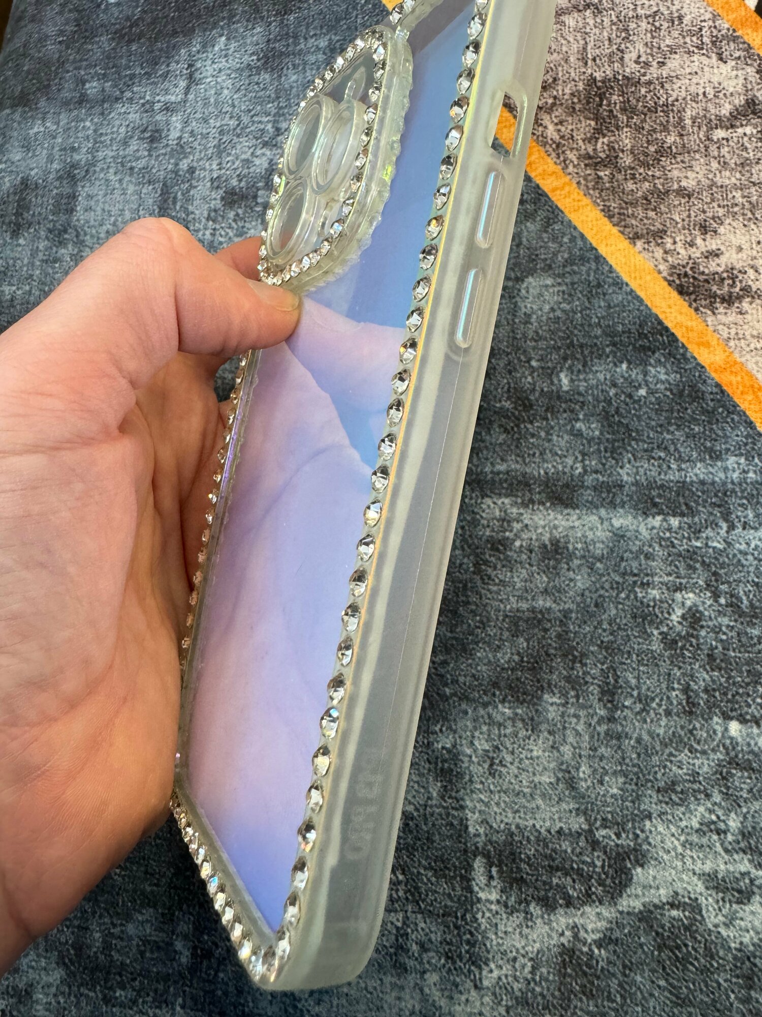 Чехол панель накладка бампер MyPads Diamond для iPhone 13 Pro тонкая пластиковая крышка прозрачная окантовка с защитой камеры и стразами цвет хамел... интересное:
