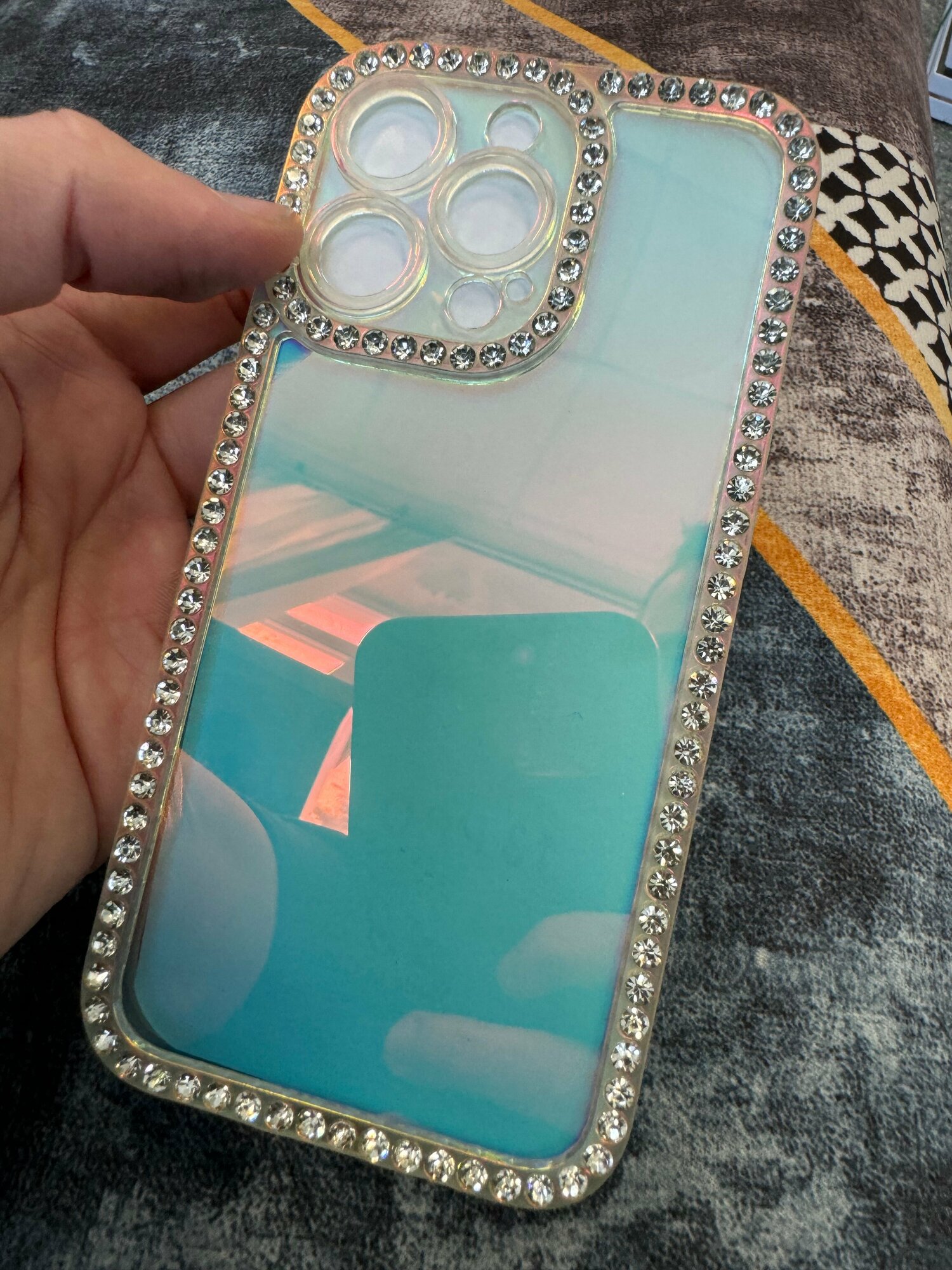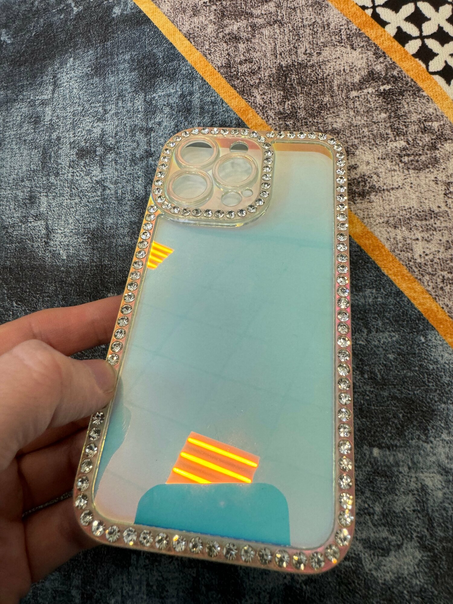 Купить Чехол панель накладка бампер MyPads Diamond для iPhone 13 Pro тонкая пластиковая крышка прозрачная окантовка с защитой камеры и стразами цвет хамел...