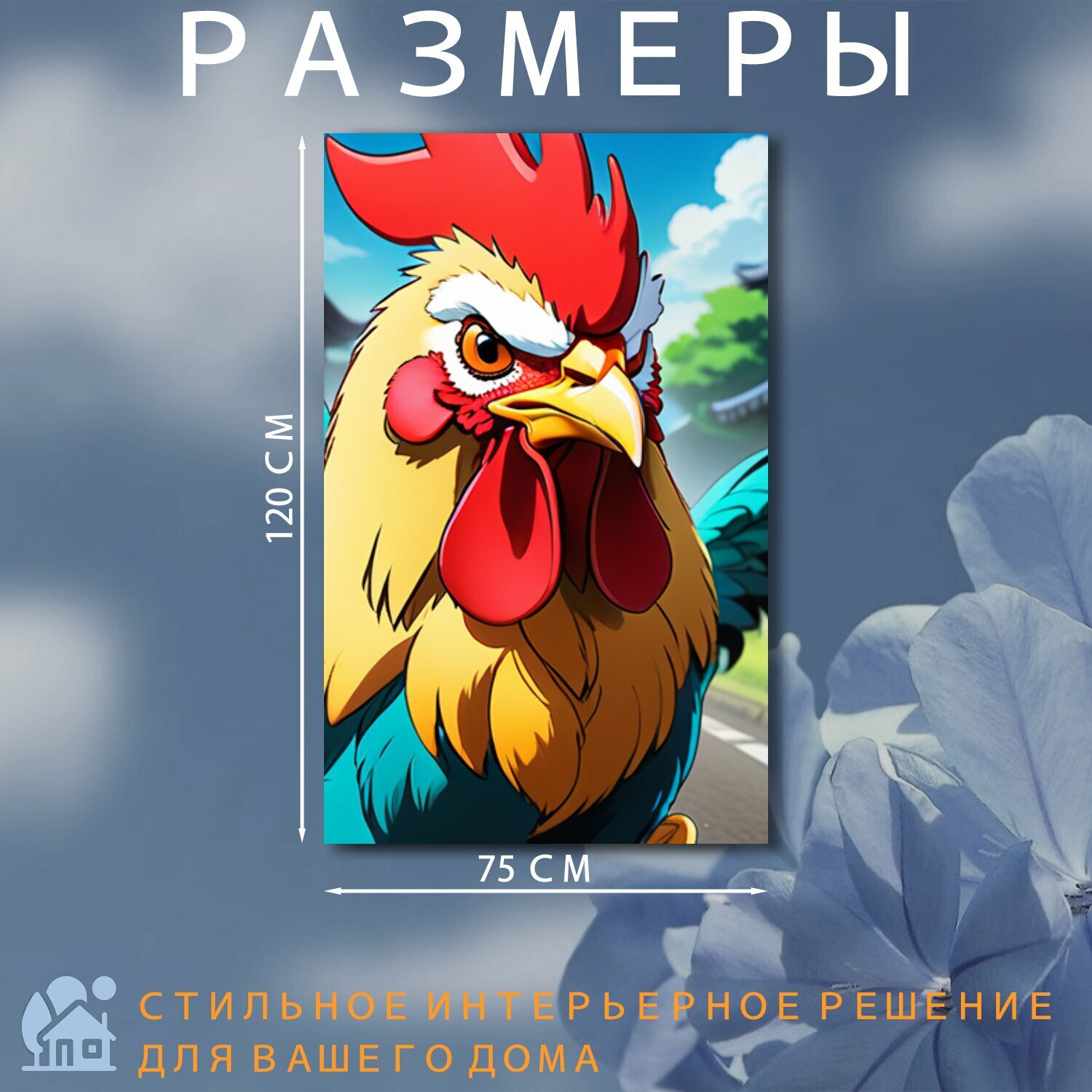 Картина на холсте В детскую комнату "Животные, звери, петух бежит" на подрамнике 75х120 см. для интерьера интересное: