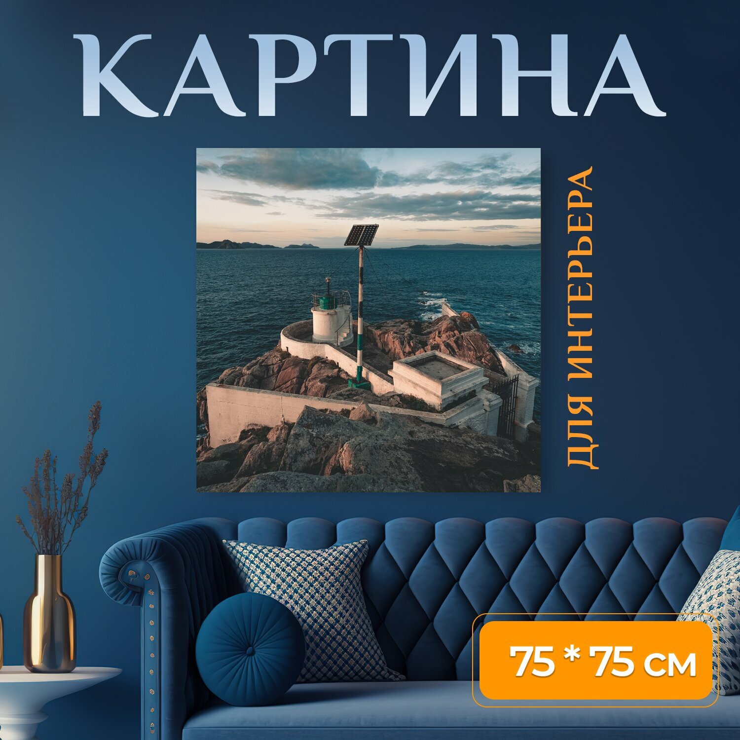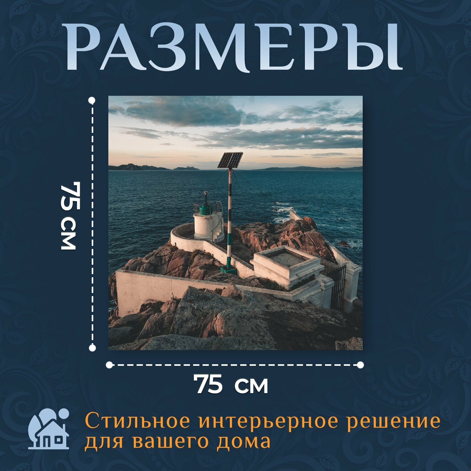 Картина на холсте "Море, маяк, океан" на подрамнике 75х75 см. для интерьера интересное: