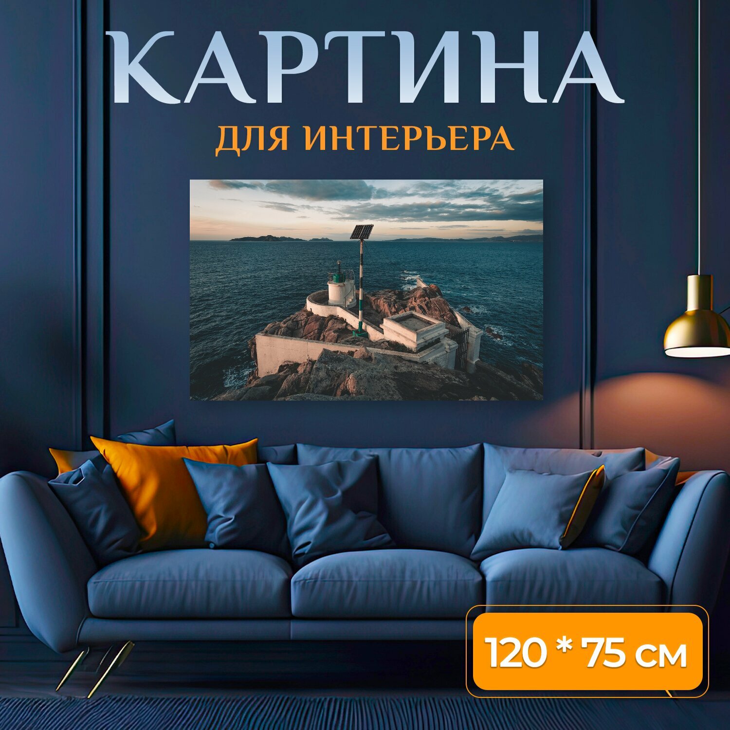 Купить Картина на холсте "Море, маяк, океан" на подрамнике 120х75 см. для интерьера
