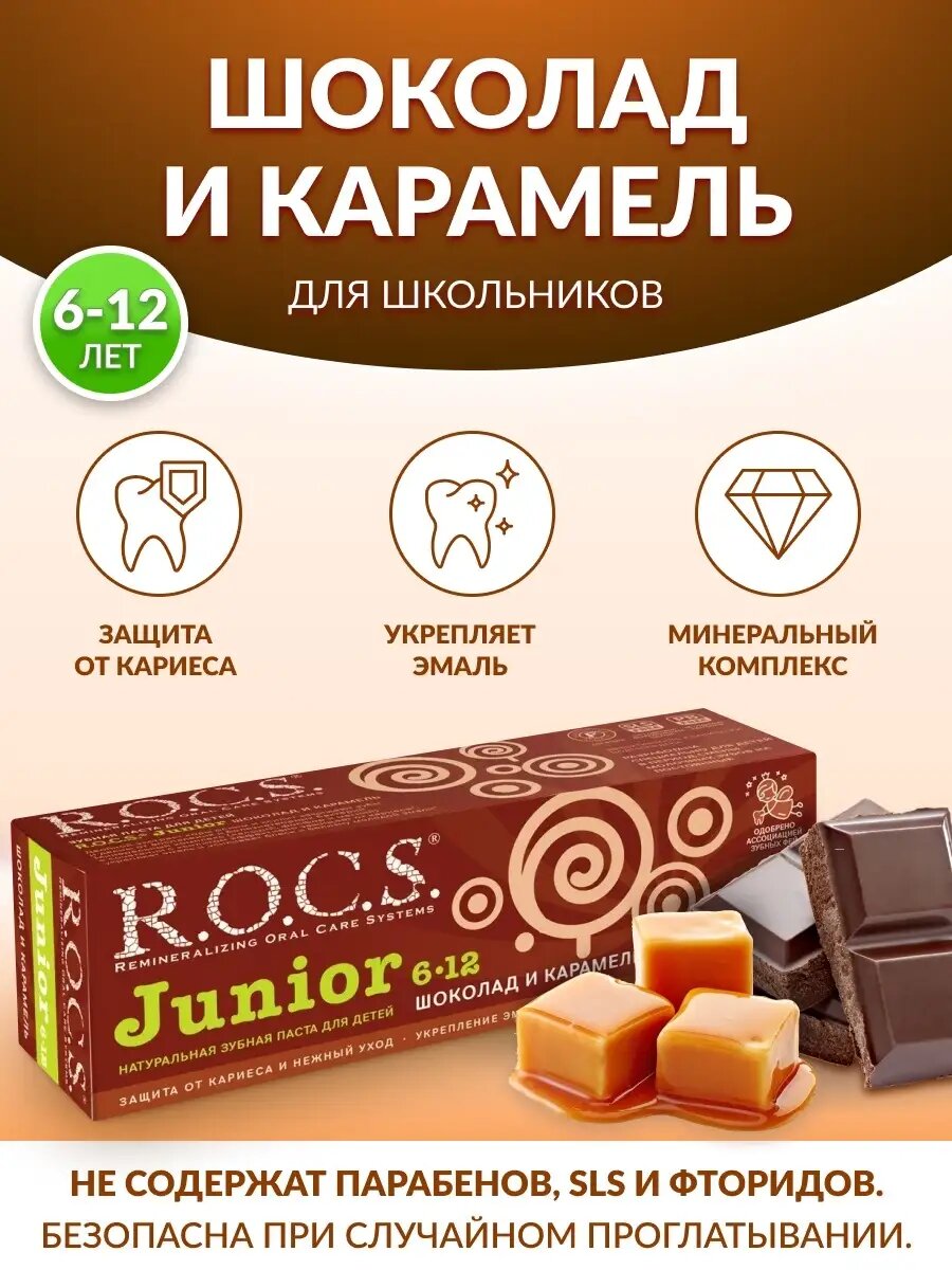 Зубная паста R.O.C.S. Junior "Шоколад и карамель" 6-12 лет, 74 г./В упаковке шт: 1