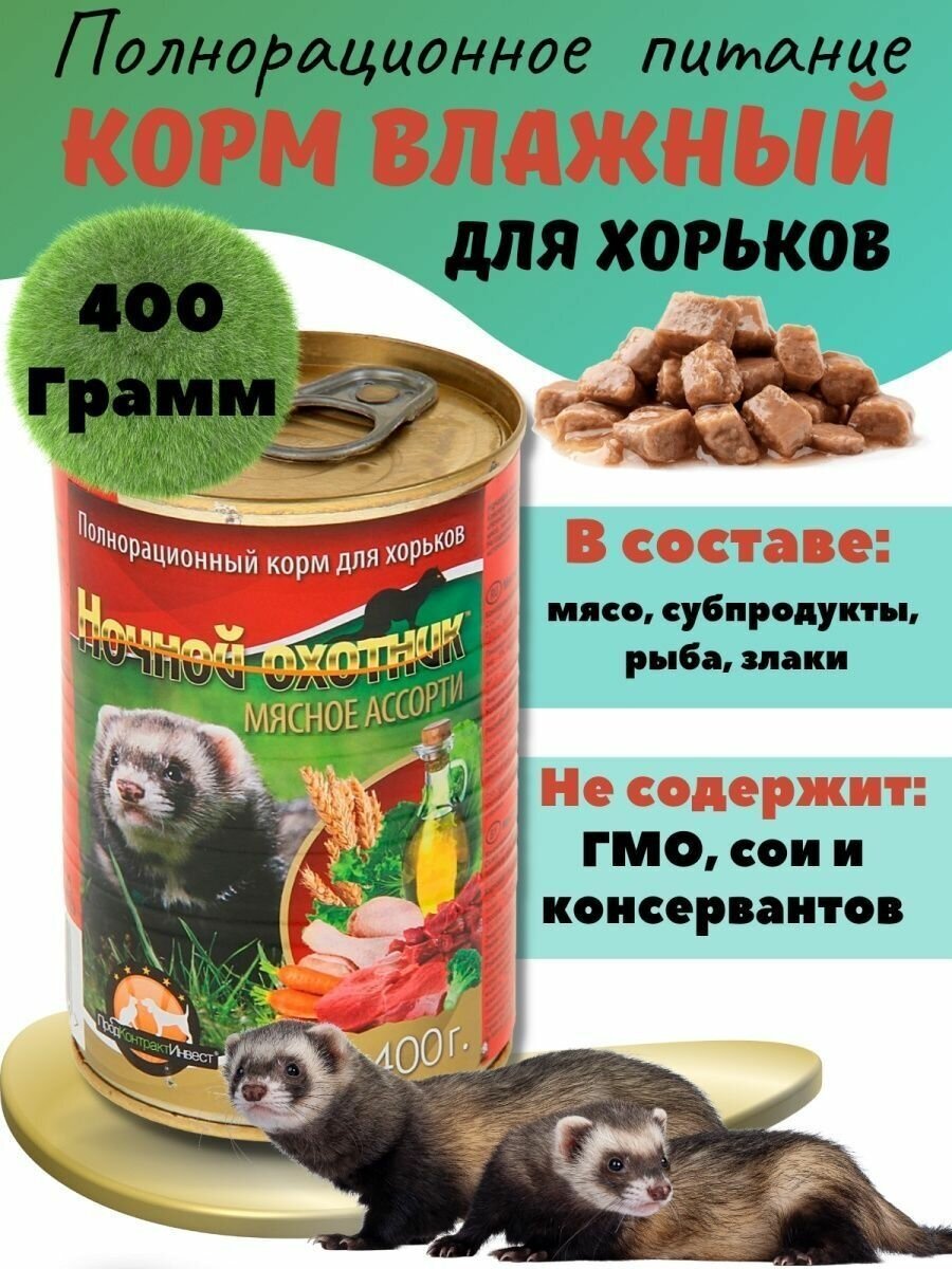Корм для хорьков Ночной охотник мясное ассорти консервированный , 400 г