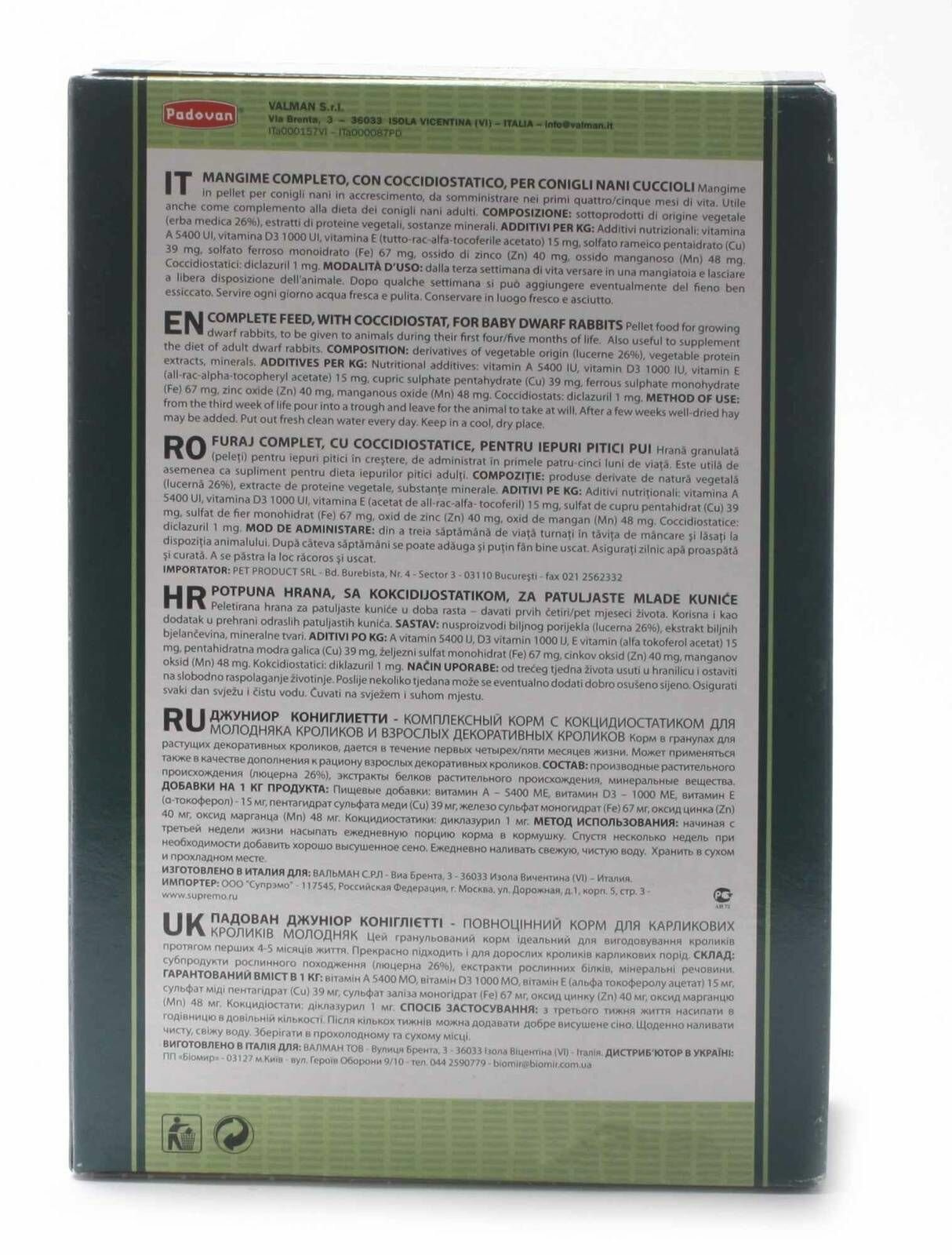 Купить Padovan Junior coniglietti комплексный корм с кокцидиостатиком для кроликов и молодняка, 850 гр.
