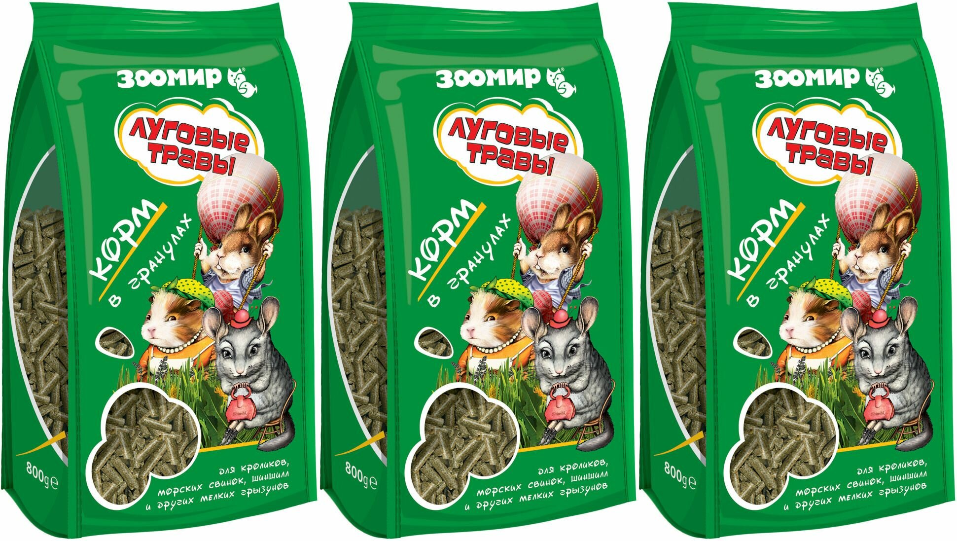 Зоомир Корм сухой для кроликов и грызунов Луговые травы, 800 г, 3 уп