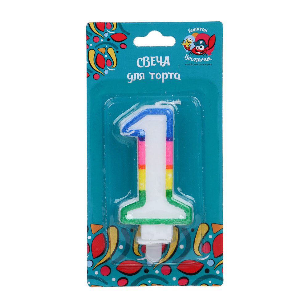 Капитан Весельчак Свеча для торта в форме цифры, с подставкой (1), парафин, PP, 24 штуки интересное: