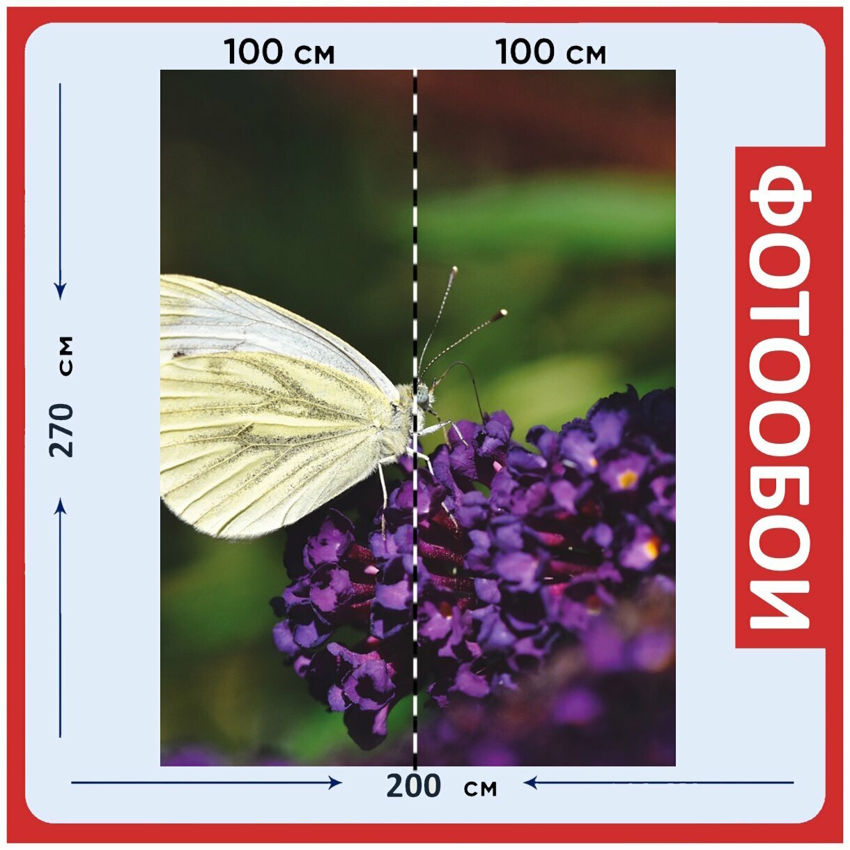 Купить Фотообои "Бабочка, цветы, насекомое" 200x270 см. флизелиновыена стену
