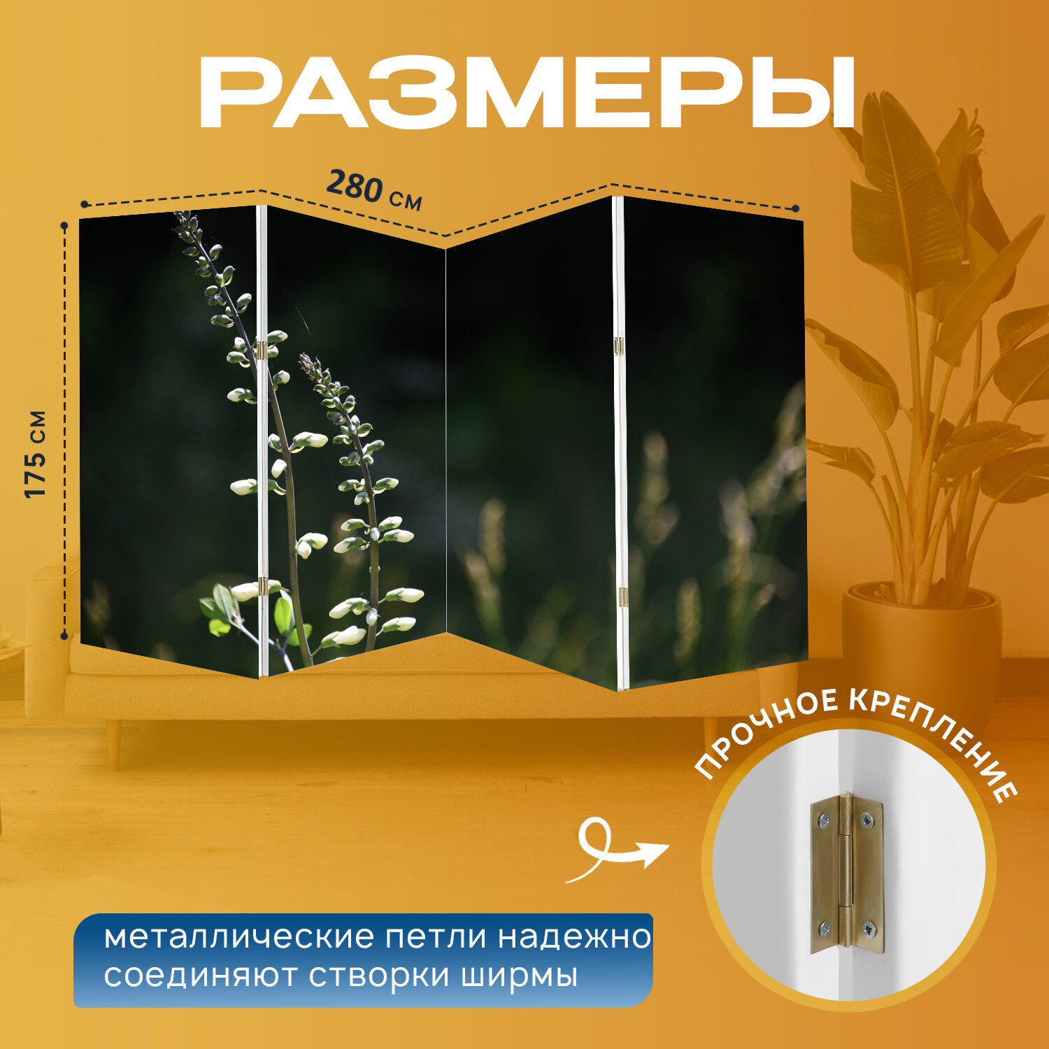 Ширма "Индиго, полевой цветок, белый" раскладная перегородка для зонирования с принтом на холсте интересное: