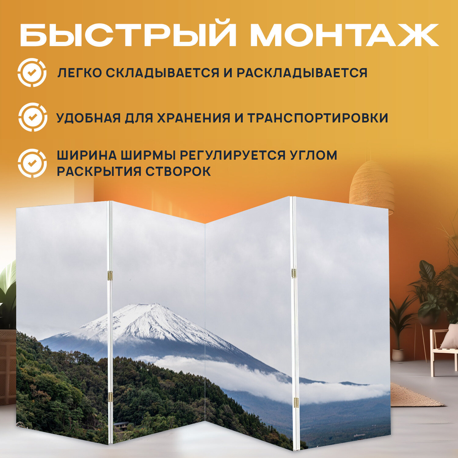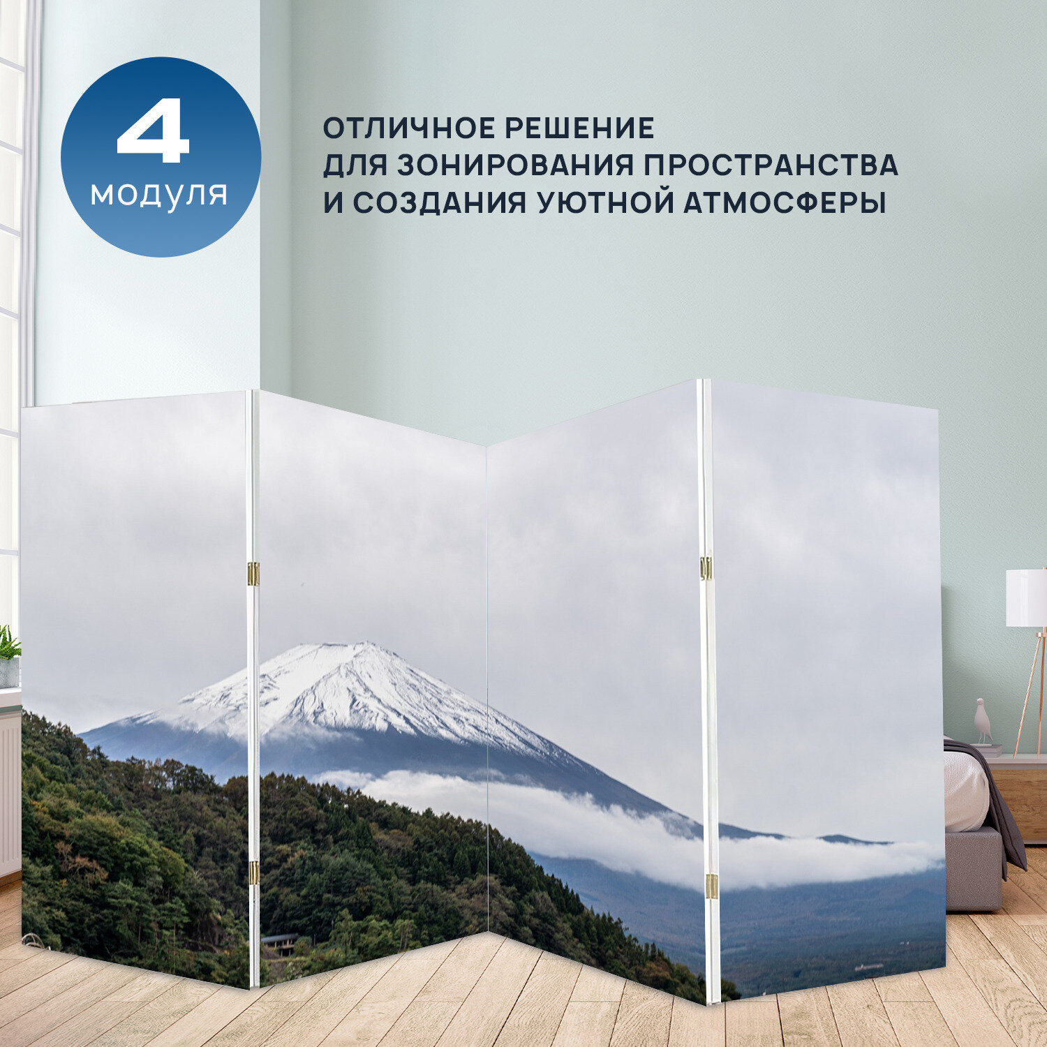 Купить Ширма "Фудзи, япония, вулкан" раскладная перегородка для зонирования с принтом на холсте