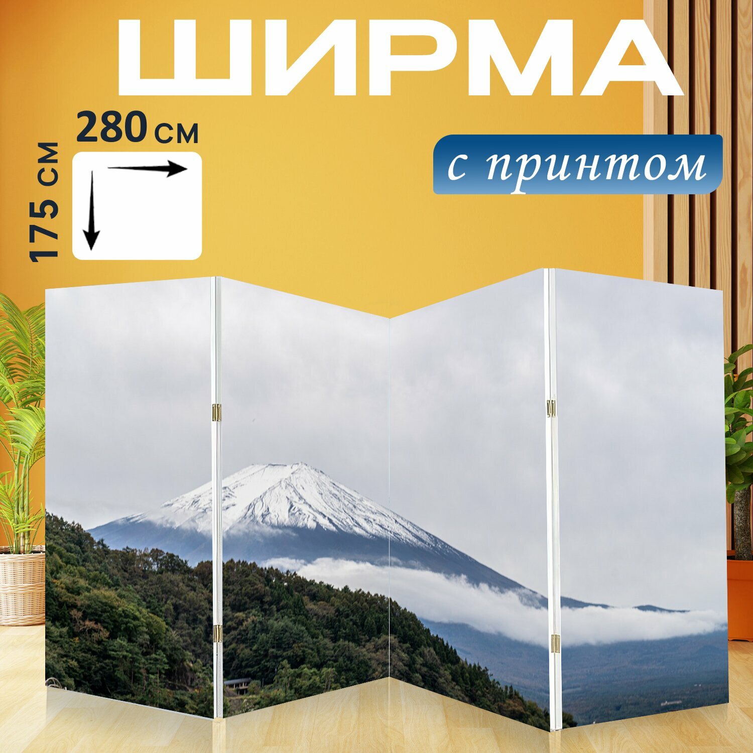 Ширма "Фудзи, япония, вулкан" перегородка для зонирования комнаты с принтом 280x175 см. на холсте