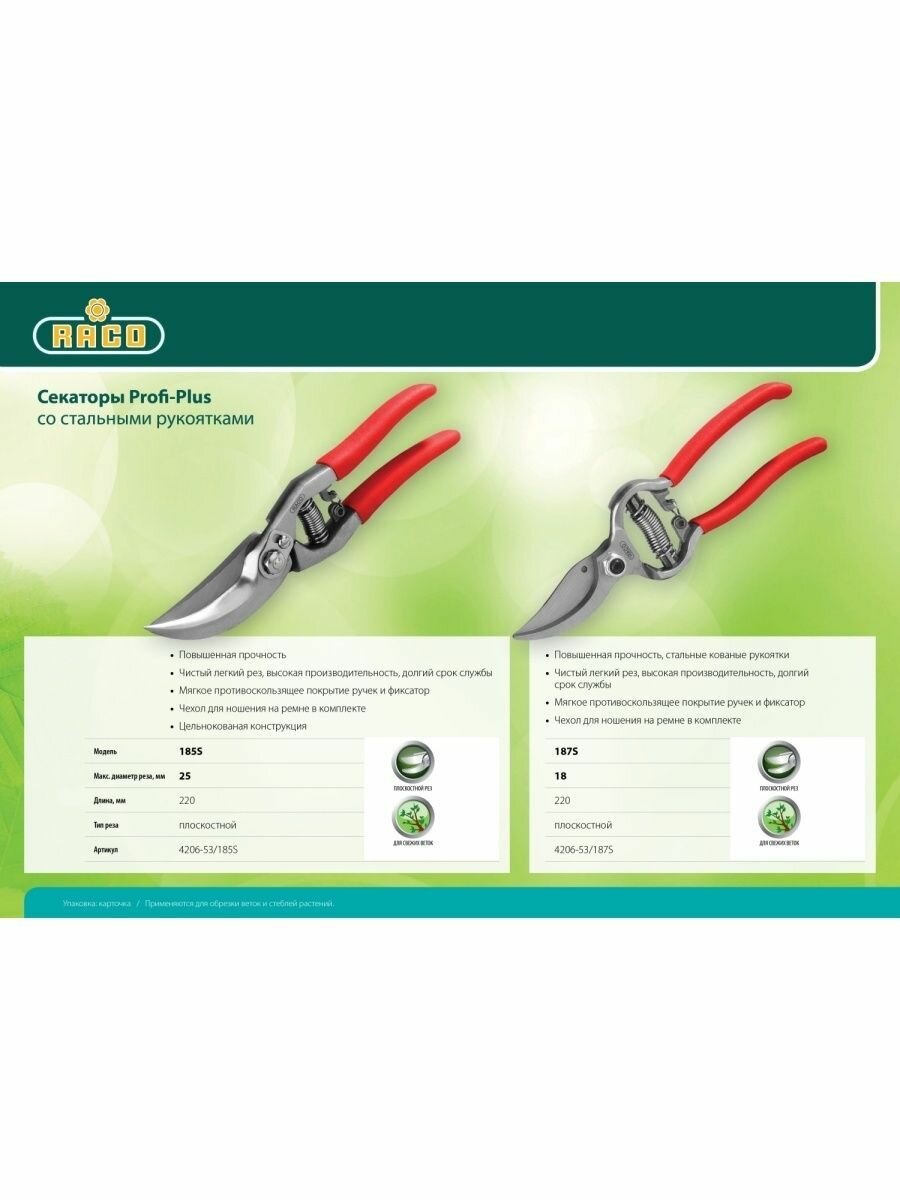 Секатор плоскостной RACO Profi-Plus 185S, 220 мм, цельнокованый, 4206-53/185S
