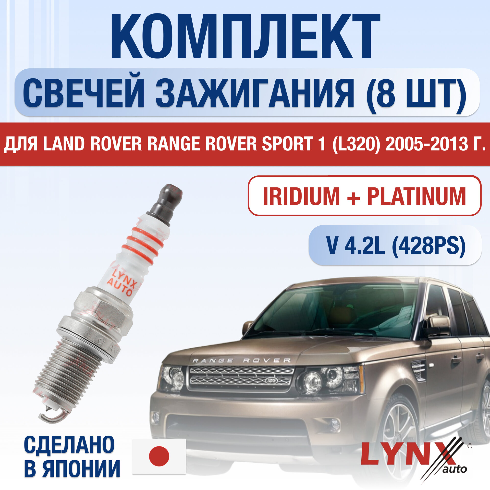 Свечи зажигания для Land Rover Range Rover Sport (1) L320, набор 8 шт / 2005 2006 2007 2008 2009 2010 2011 2012 2013 / 4.2 / Двигатель 428PS 4,2 л / Комплект свечей Иридий + Платина Ленд Ровер Рендж Ровер Спорт интересное: