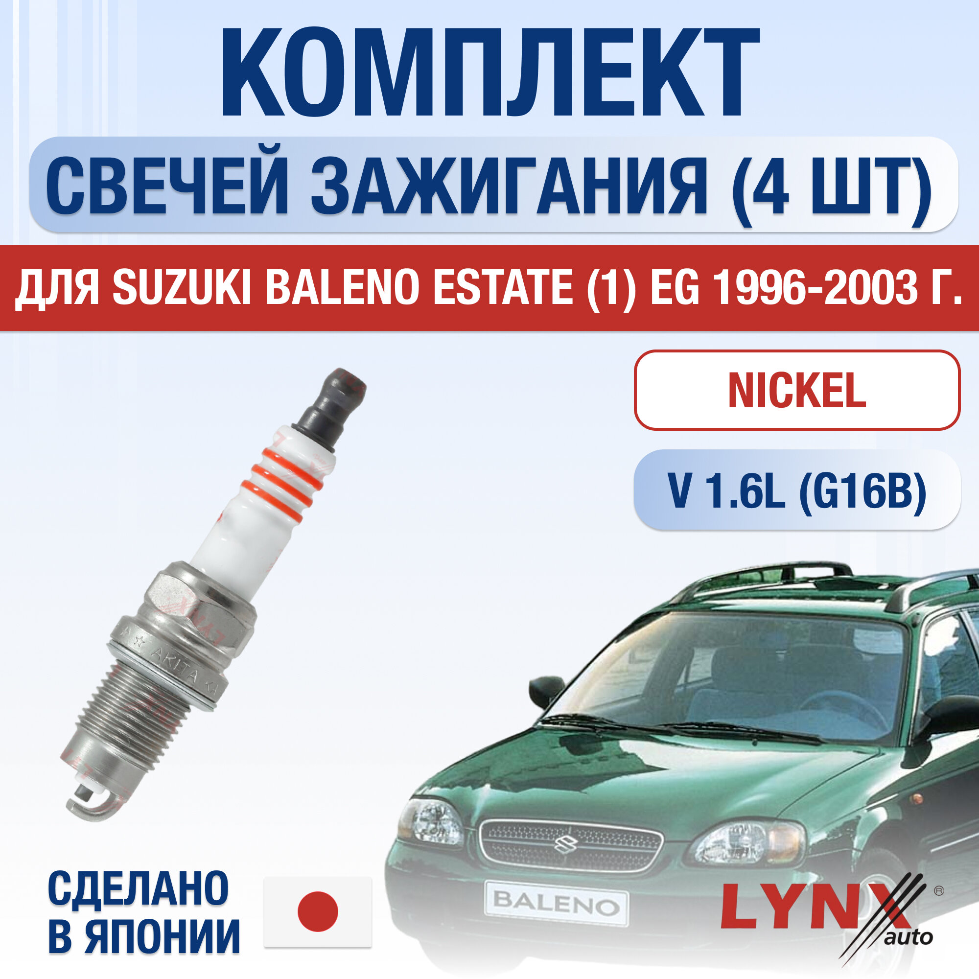 Свечи зажигания для Suzuki Baleno Estate (1) EG, набор 4 шт / 1996 1997 1998 1999 2000 2001 2002 2003 / 1.6 / Двигатель G16B 1,6 л / Комплект свечей Никель Сузуки Балено Универсал интересное: