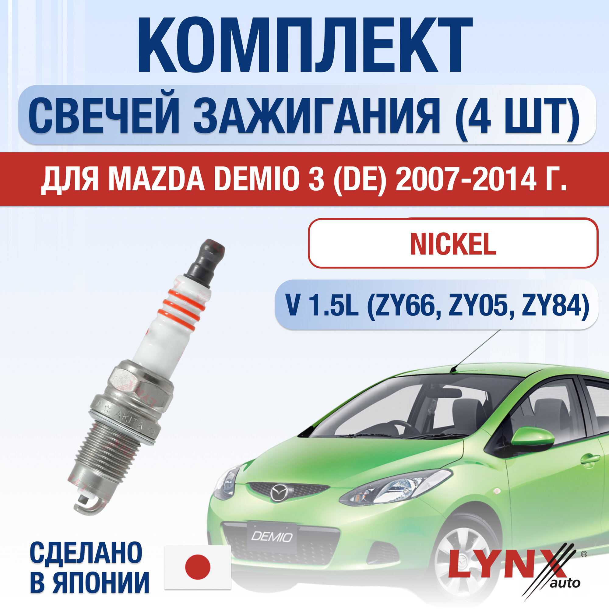 Свечи зажигания для Mazda Demio (3) DE, набор 4 шт / 2007 2008 2009 2010 2011 2012 2013 2014 / 1.5 / Двигатель ZY66, ZY05, ZY84 1,5 л / Комплект свечей Никель Мазда Демио интересное: