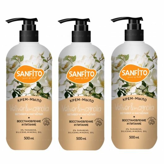 Sanfito Жидкое крем-мыло, Ветивер и магнолия, Восстановление и питание, 500 мл, 3 шт интересное: