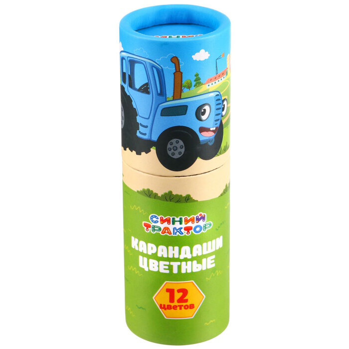 Купить Цветные карандаши в тубусе, 12 цветов, трехгранные, Синий трактор