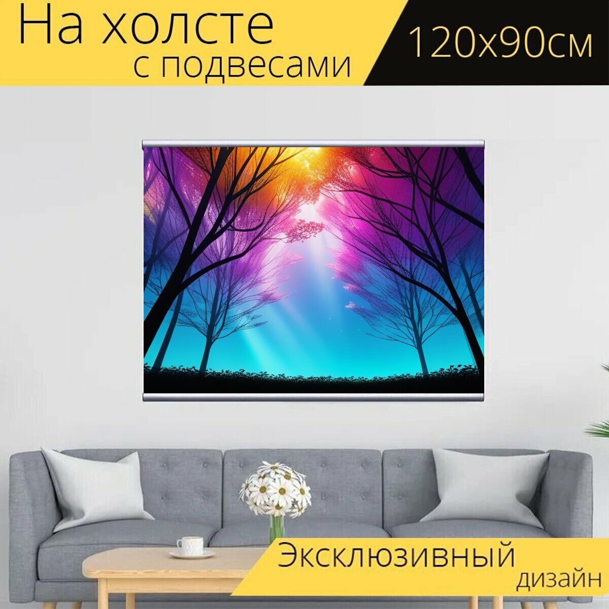 Купить Картина на холсте "Пейзаж с земли максимал, " с подвесами 120х90 см. для интерьера на стену