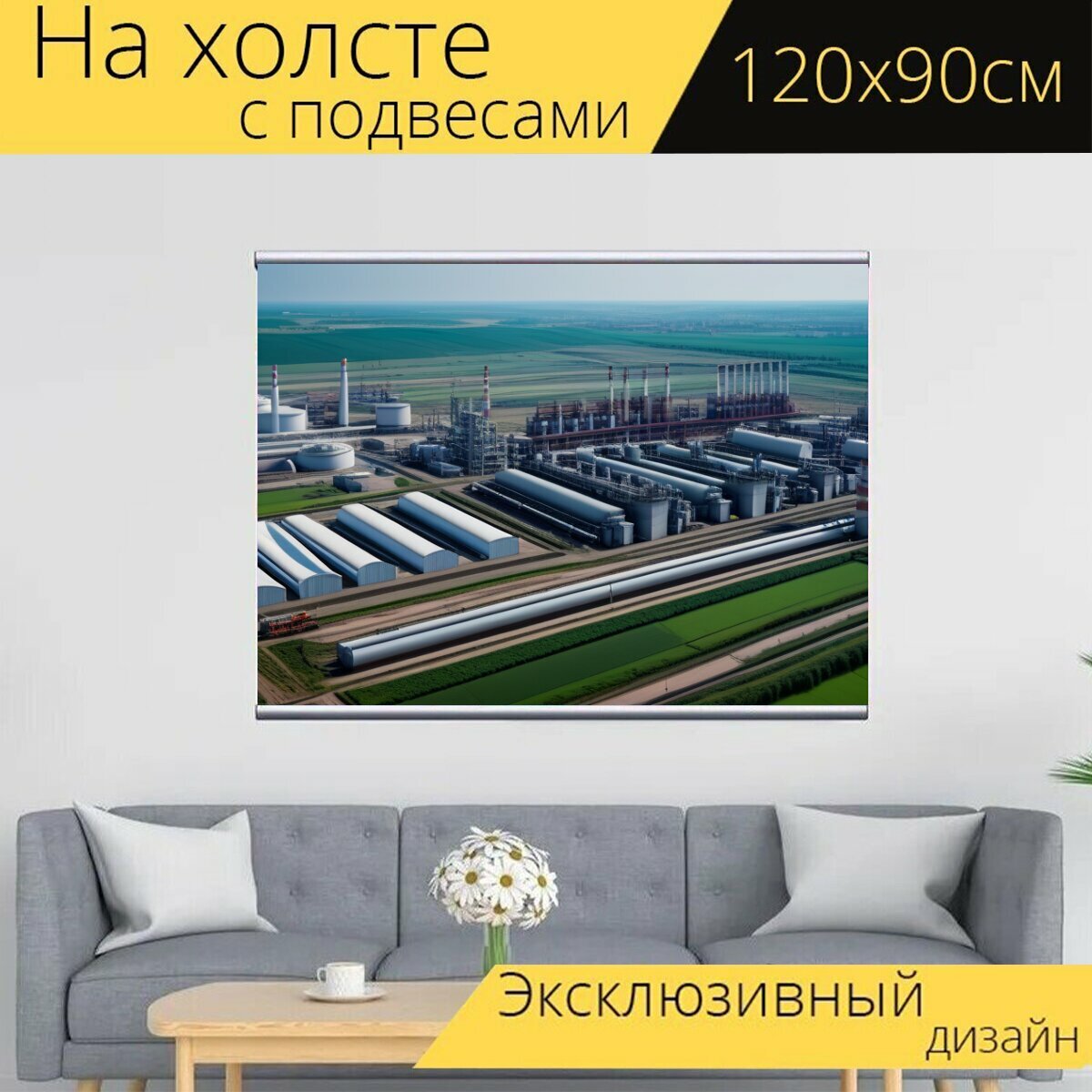 Картина на холсте "Пейзаж с завода, " с подвесами 120х90 см. для интерьера на стену интересное: