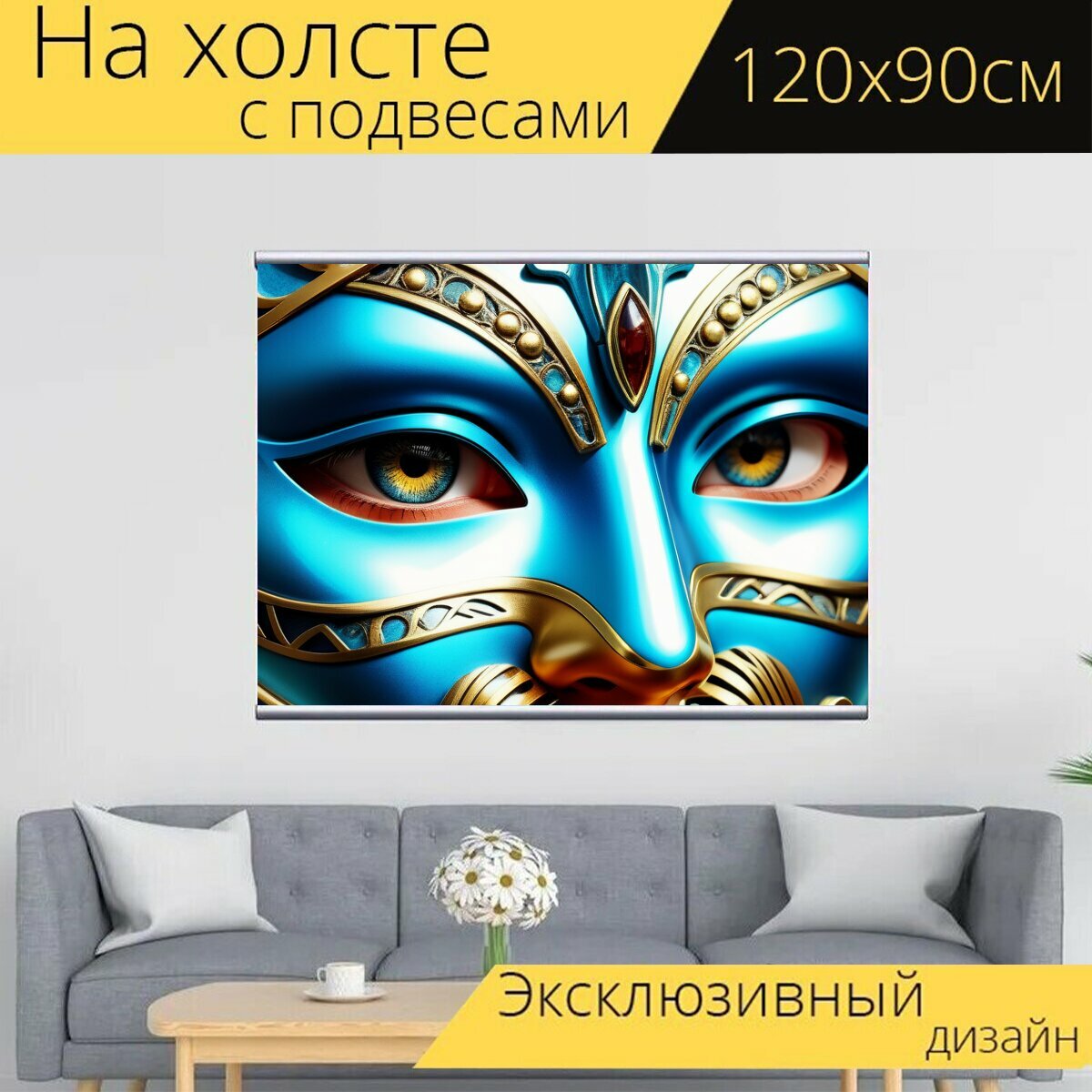 Картина на холсте "Пейзаж с масками красивый, " с подвесами 120х90 см. для интерьера на стену интересное: