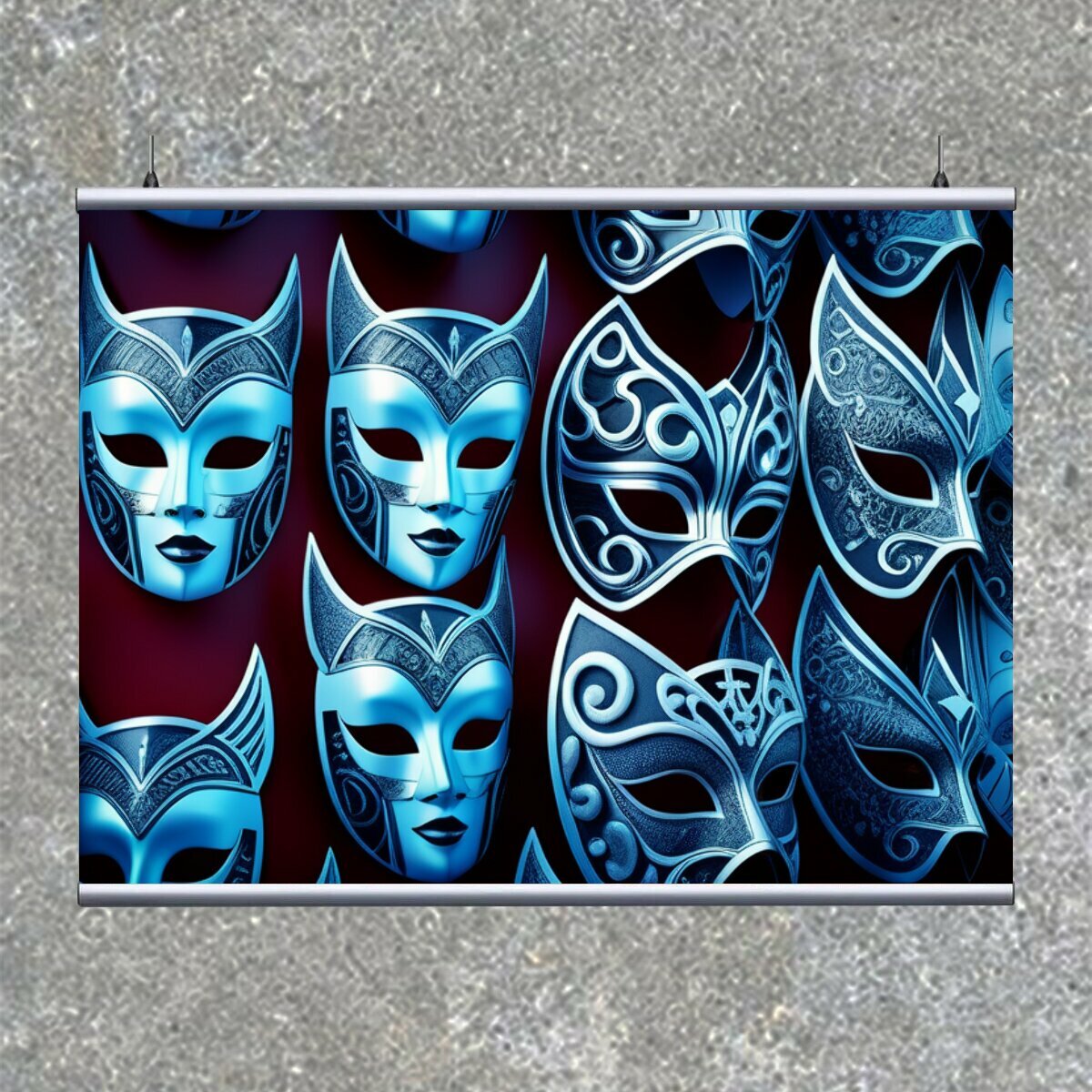 Картина на холсте "Пейзаж с масками , " с подвесами 120х90 см. для интерьера на стену интересное:
