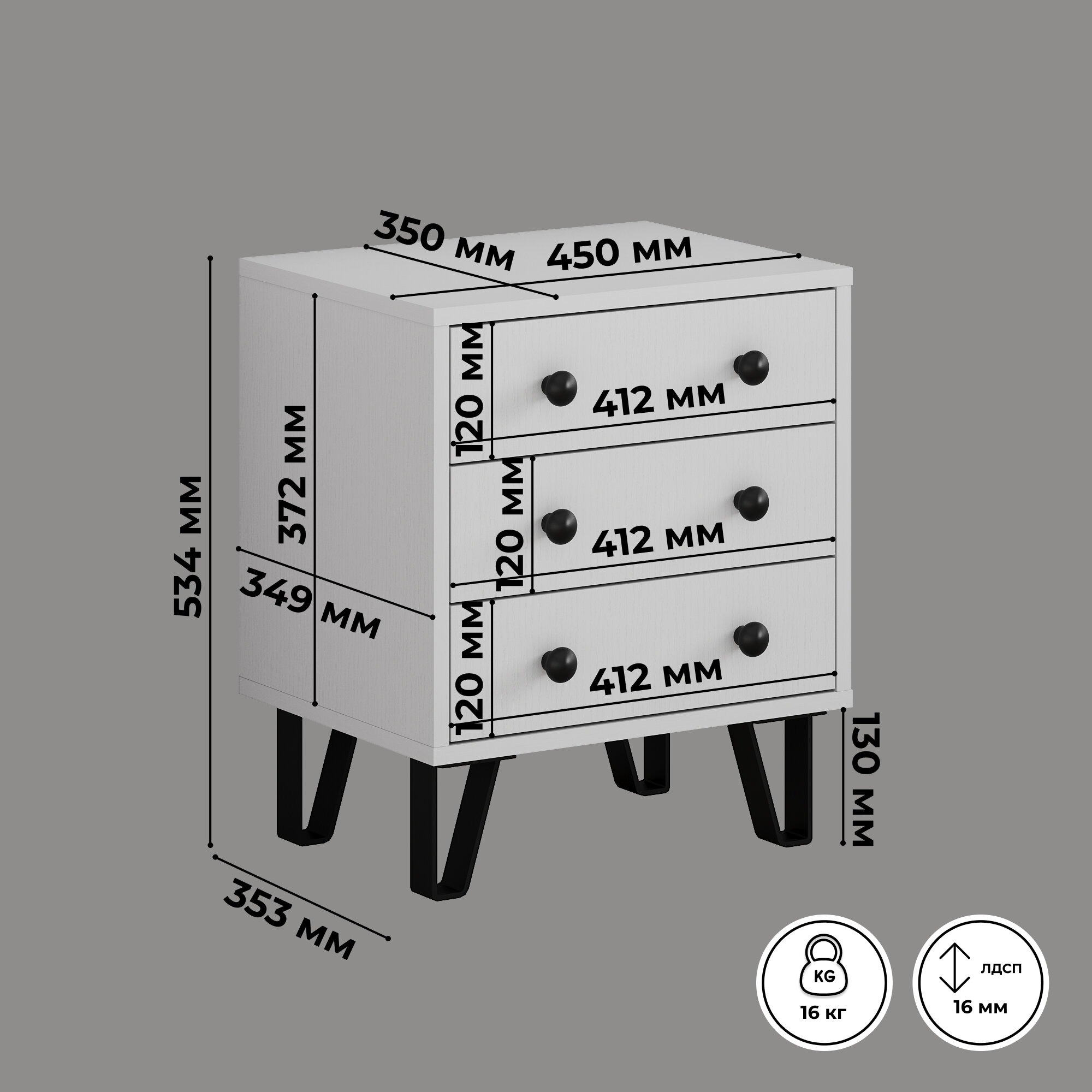 СохранитьТумба прикроватная "КЕО" с выдвижными ящиками, 53,4х45х35 см, белая интересное: