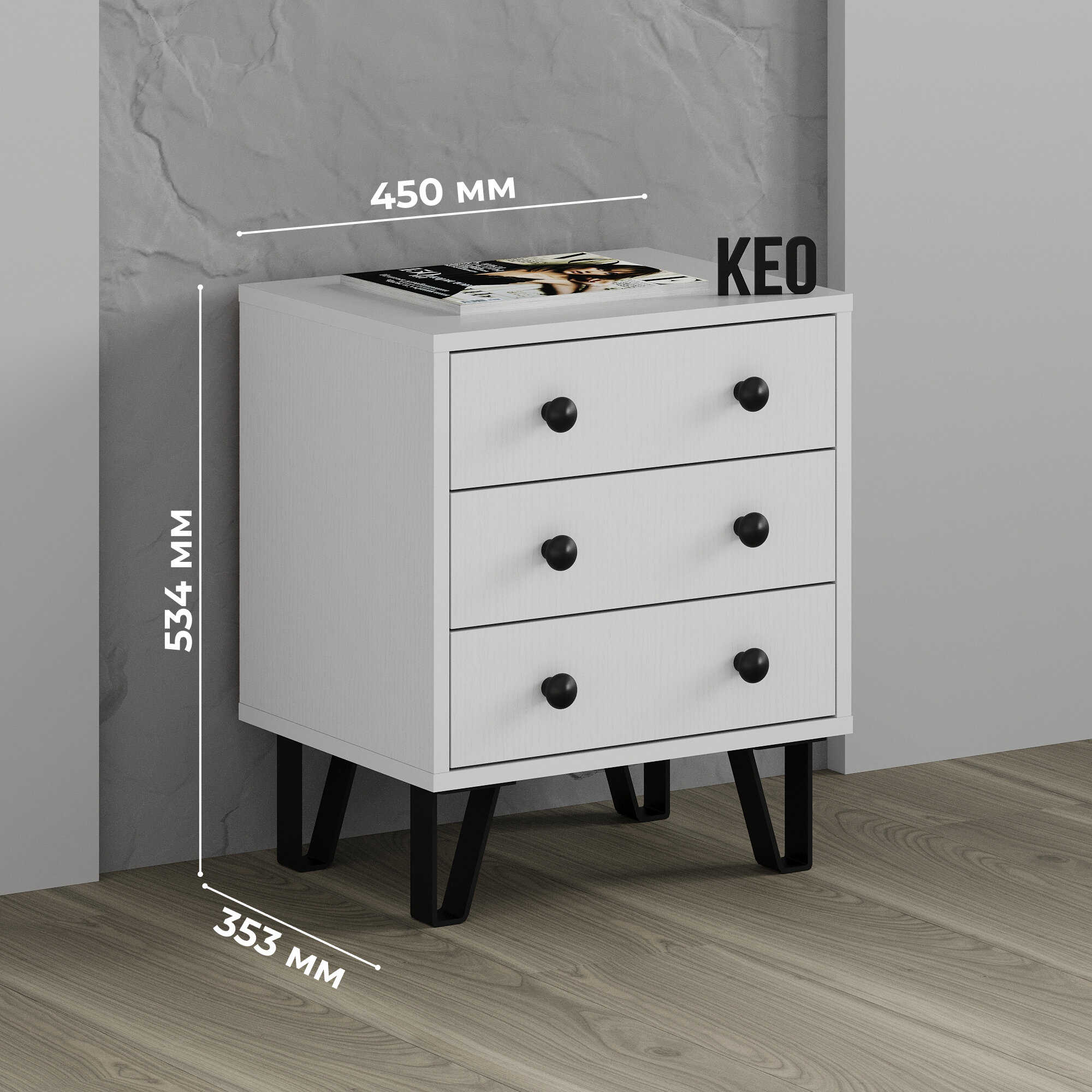 Купить Тумба прикроватная "КЕО" с выдвижными ящиками, 53,4х45х35 см, белая