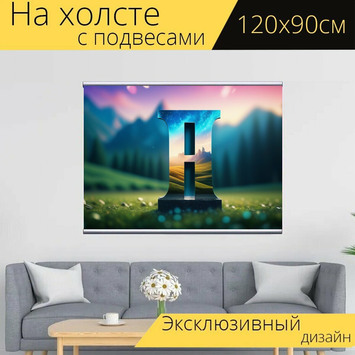 Картина на холсте "С буквой я красивый, " с подвесами 120х90 см. для интерьера на стену интересное: