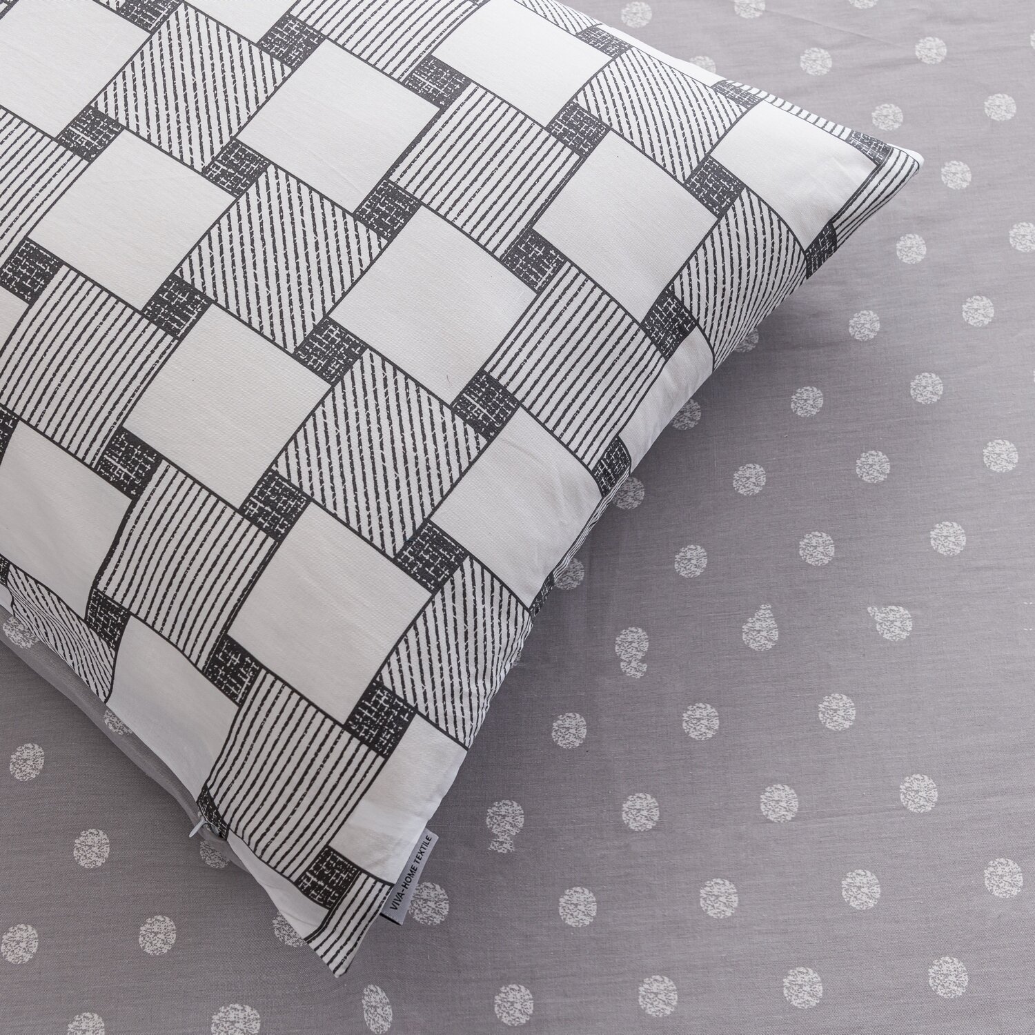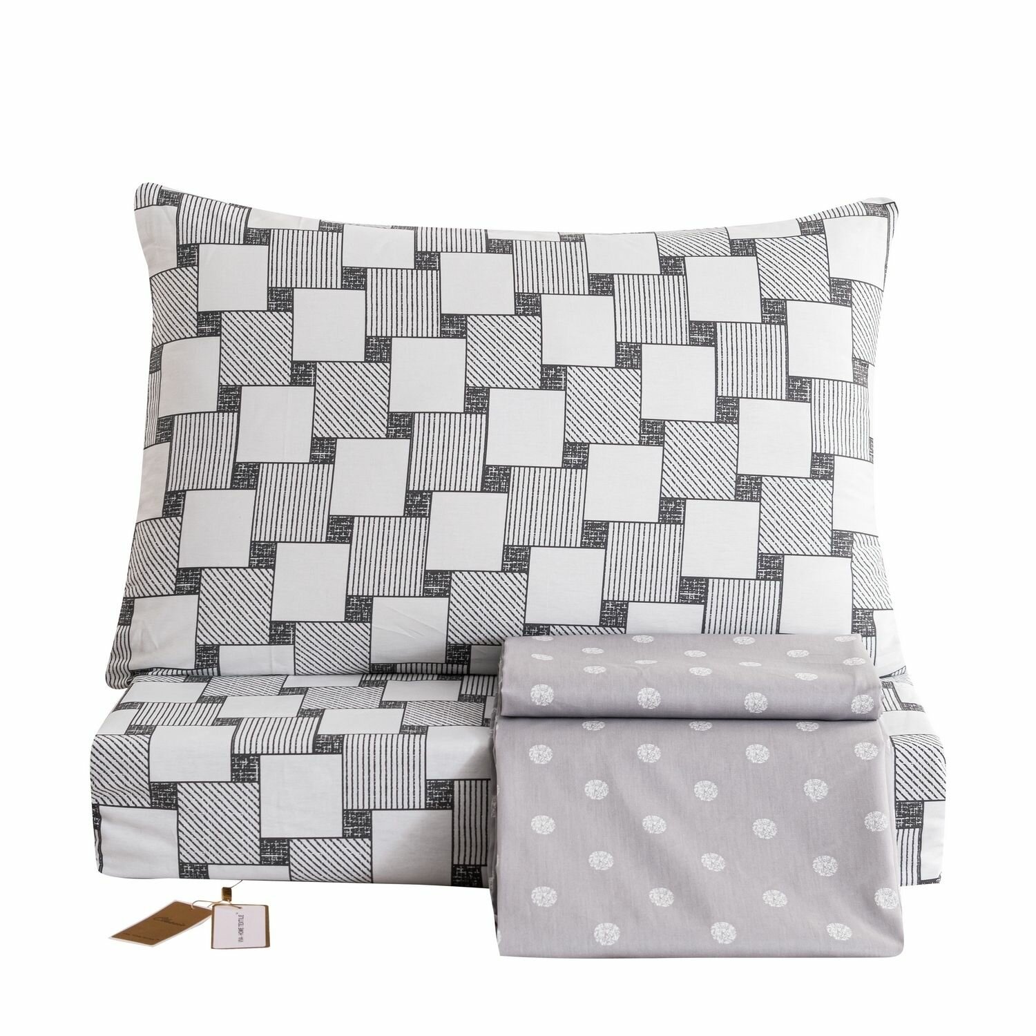 Постельное белье Семейное геометрия, сатин люкс, 100% хлопок, 4 наволочки на молнии 50x70 70х70 / Комплект постельного белья Семейный желтый