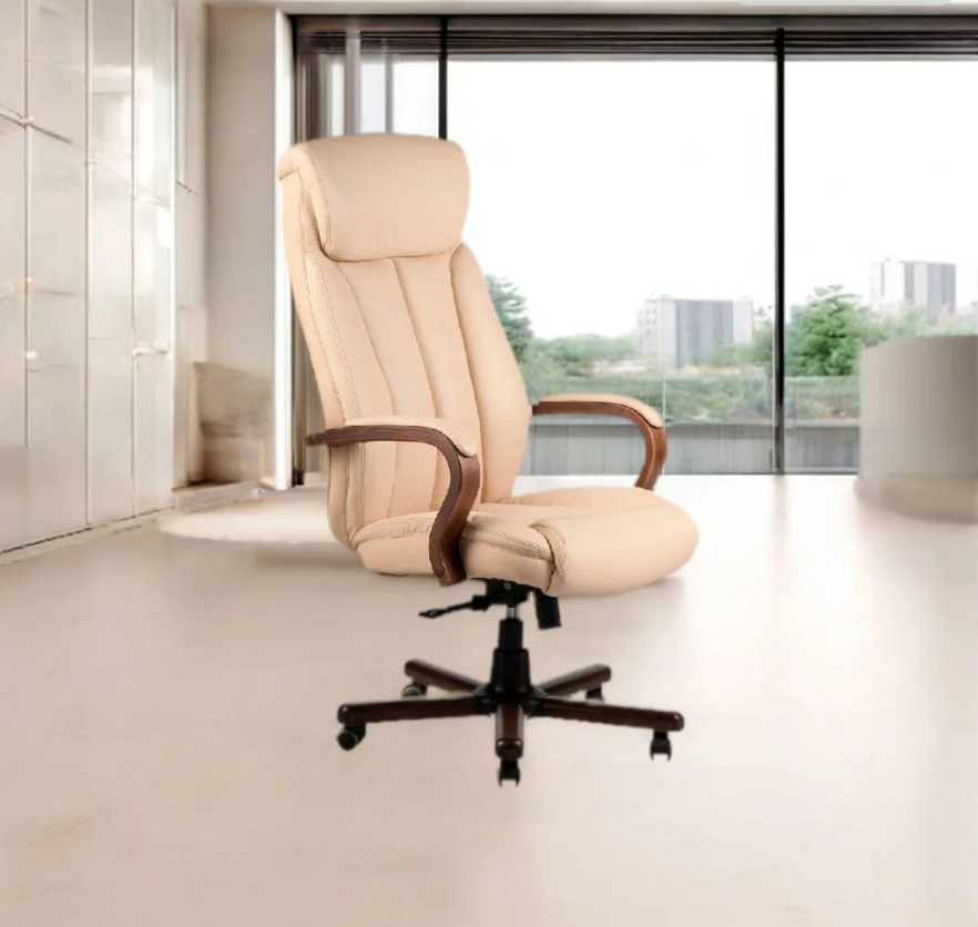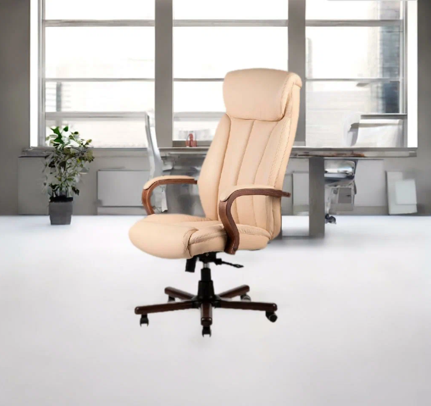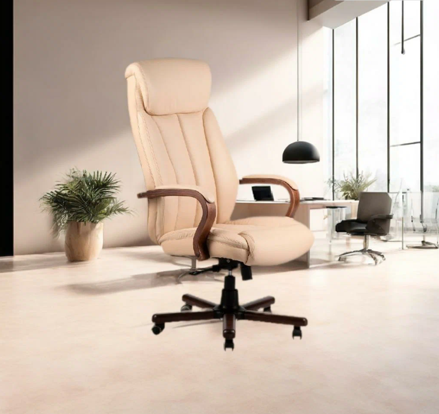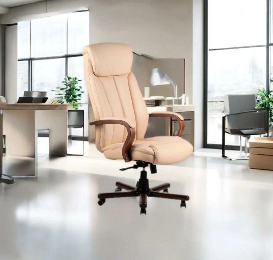 Компьютерное кресло руководителя натуральная кожа кремовая нагрузка до 150 кг./ Офисное кресло Алекс усиленное интересное: