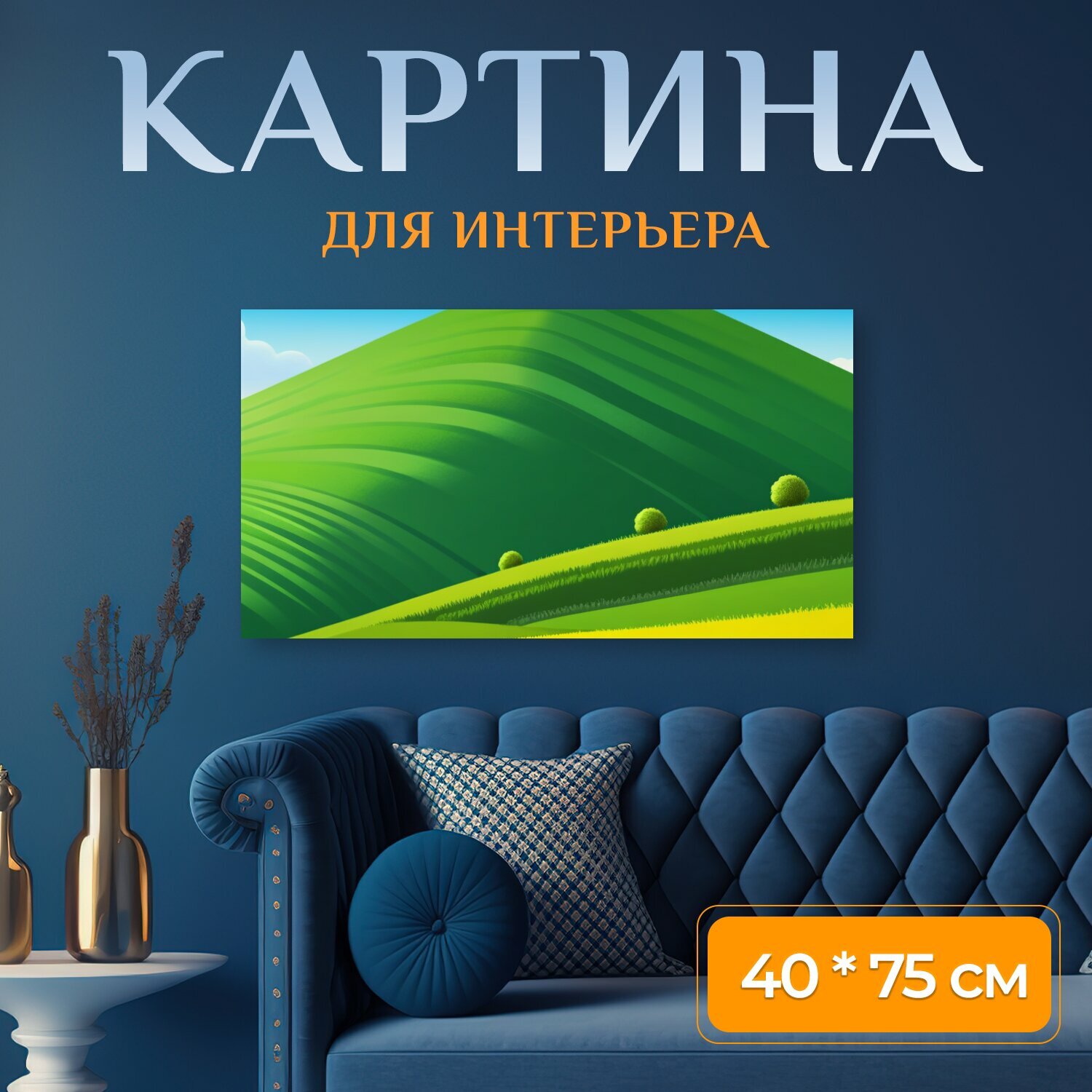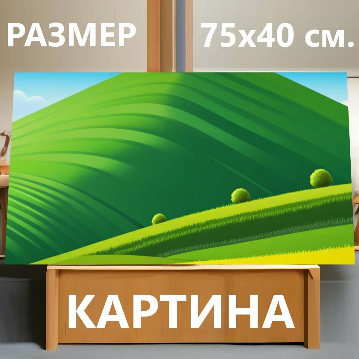 Картина на холсте "Пейзаж с холмом смешной, " на подрамнике 75х40 см. для интерьера интересное: