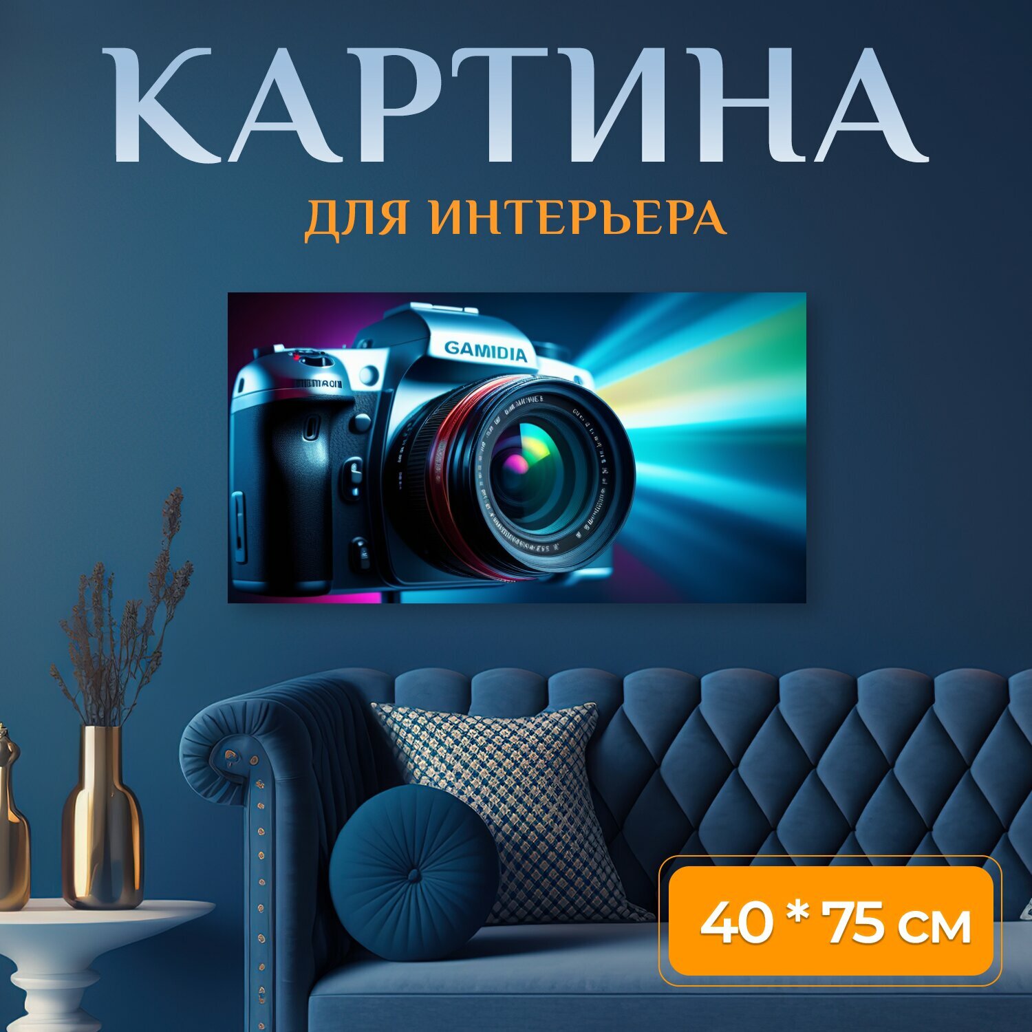 Купить Картина на холсте "С камерой , " на подрамнике 75х40 см. для интерьера