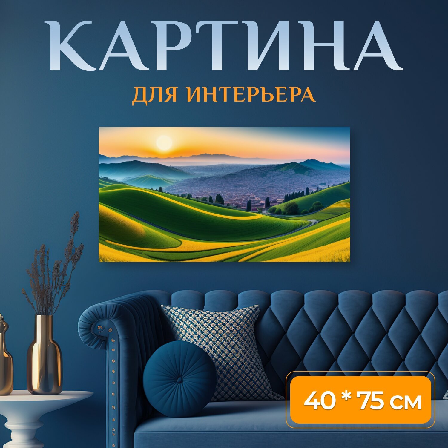 Картина на холсте "С панорамой , " на подрамнике 75х40 см. для интерьера интересное: